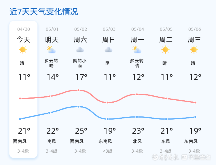 未来三天日照市气温变化较大,市民请注意适时增减衣物。5月2日有降雨,建议市民提前规划出行路线,避免因天气影响行程。雨天路滑,驾驶车辆请保持车距,减速慢行,确保安全。