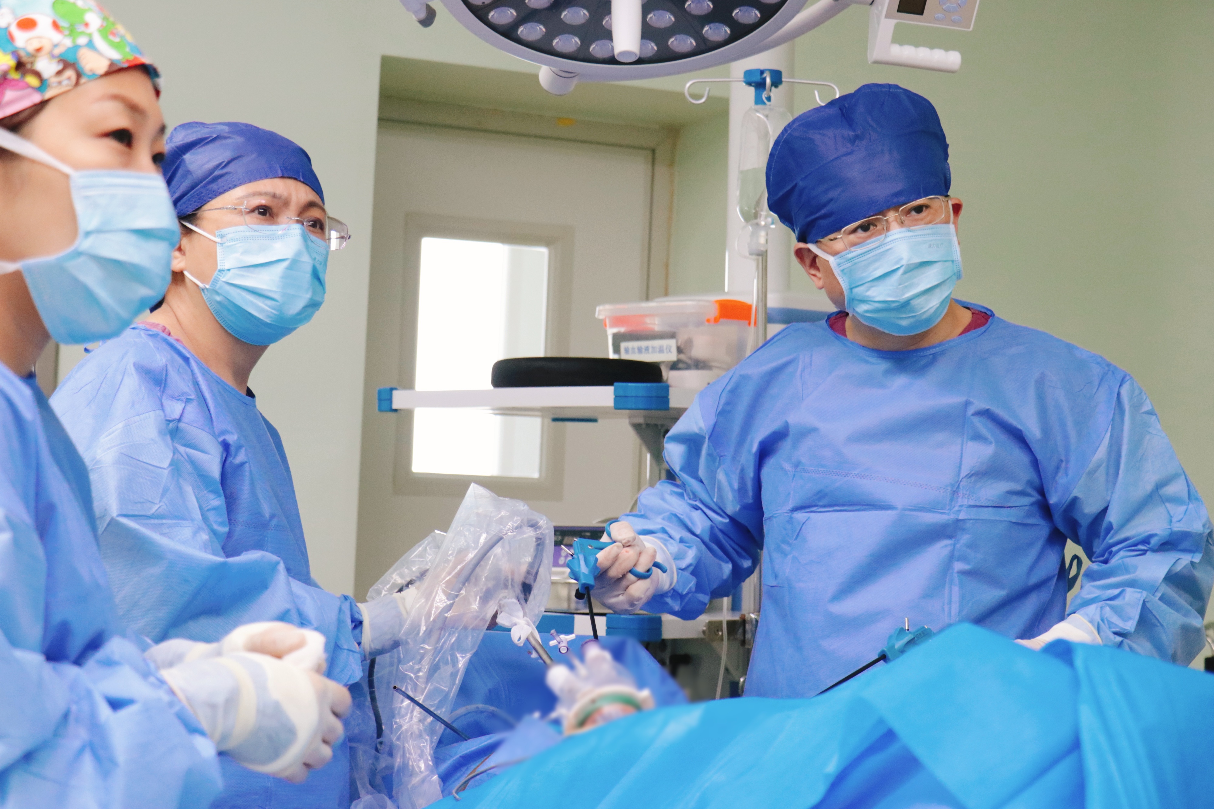 耿宇宁博士(右1)与莲池妇科团队手术中