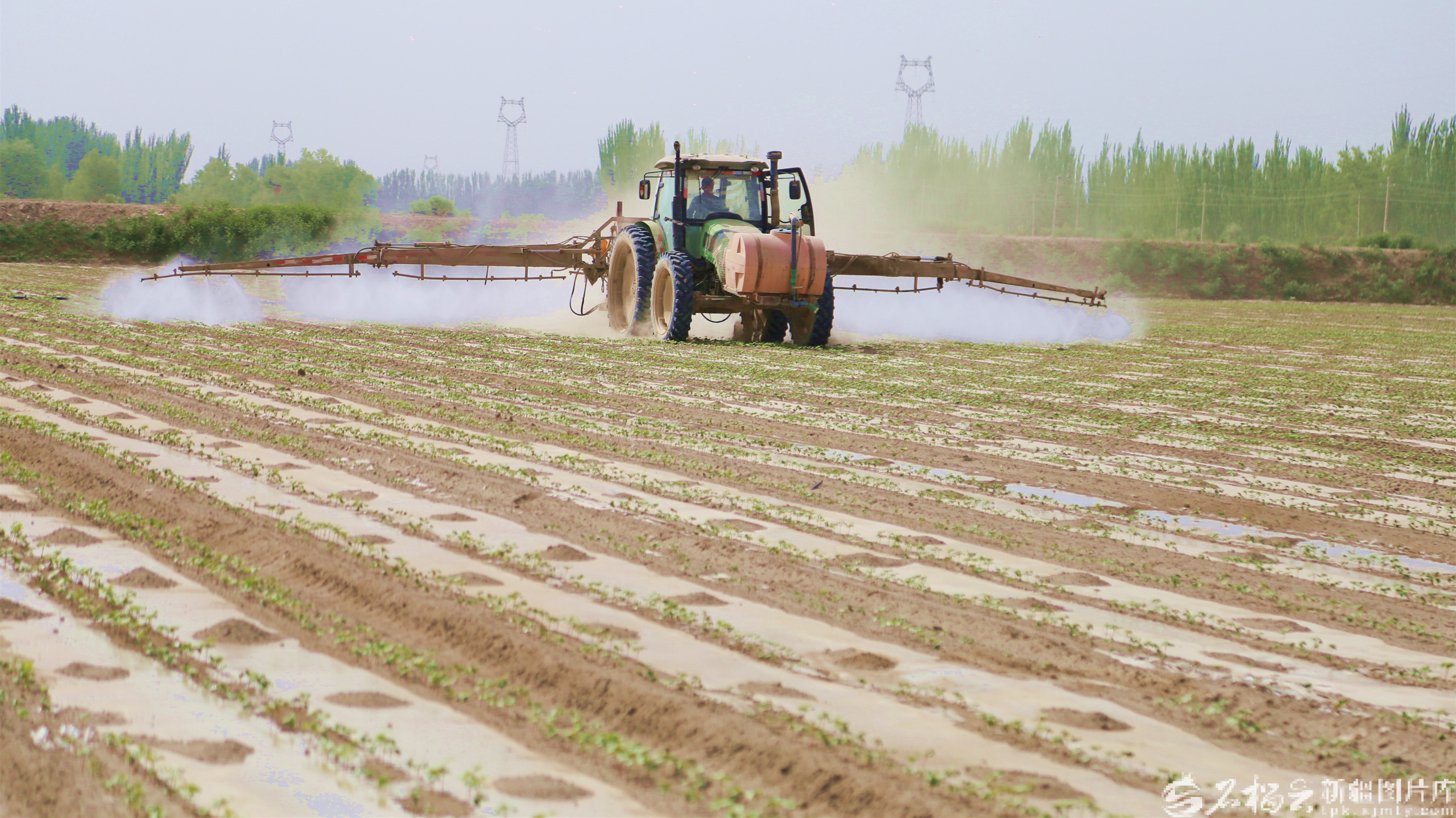 4月27日,棉农驾驶拖拉机在阿瓦提县塔木托格拉克镇阿克亚村的棉田里喷洒农药。该县种植了137.5万亩棉花,连日来,棉农抢抓农时进行管护,确保棉花丰产增收。包良廷摄