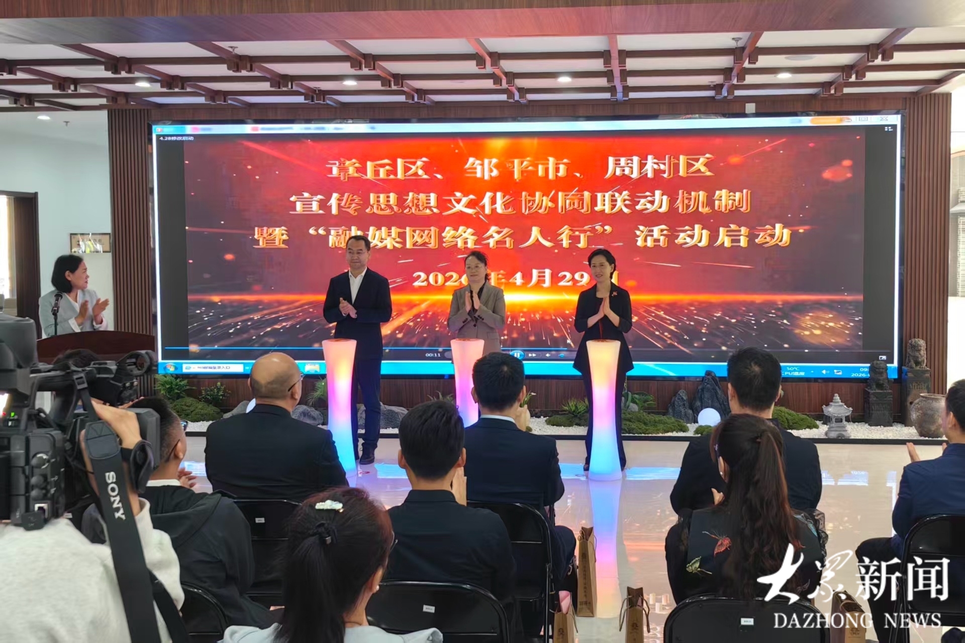 4月29日,章丘区、邹平市、周村区宣传思想文化协同联动机制启动暨“融媒网络名人行”活动在淄博周村古商城游客中心大厅举行。