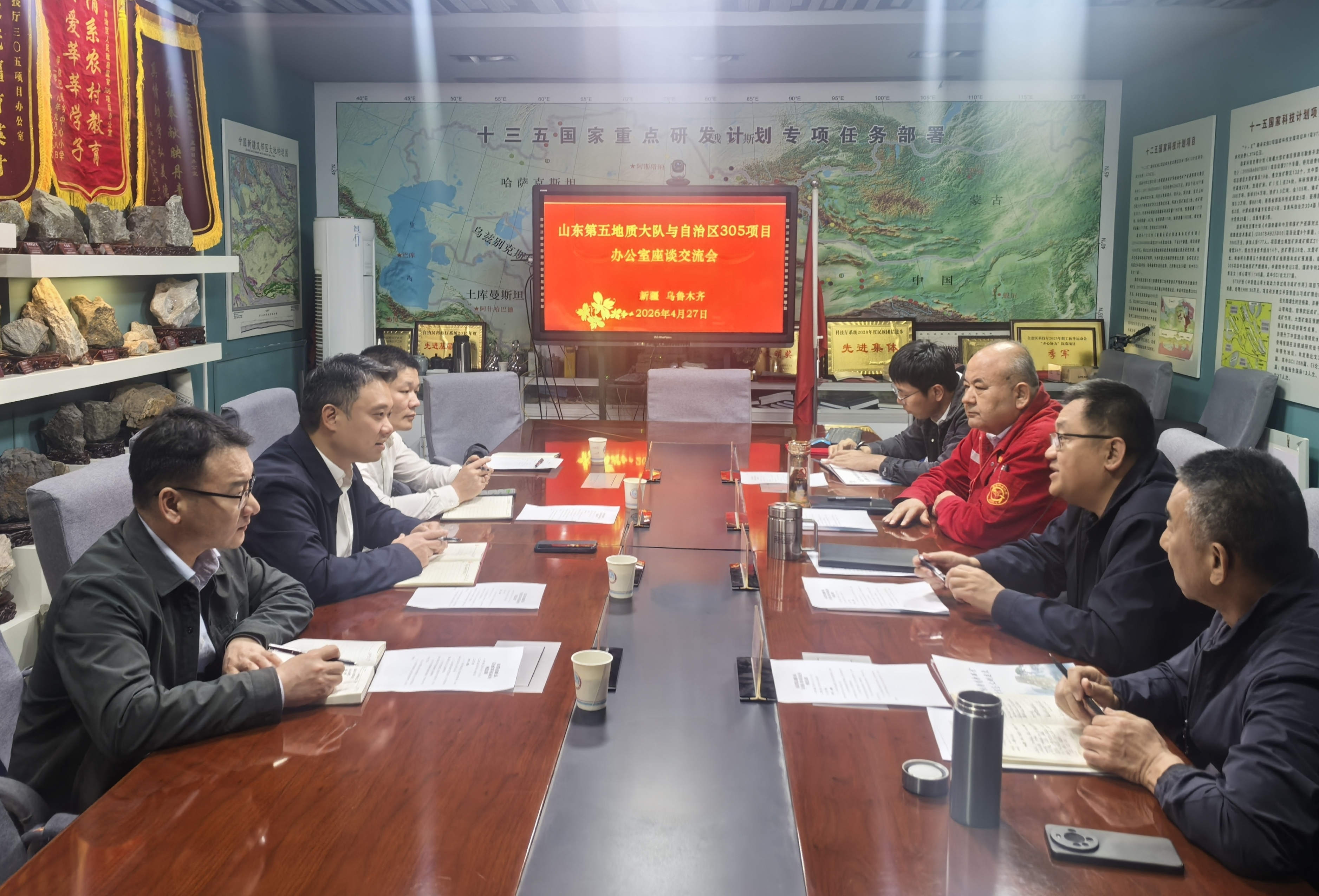 4月26日至29日,山东省地矿局五队党委书记、队长刘传朋带队先后赴新疆维吾尔自治区人民政府国家三〇五项目办公室、新疆维吾尔自治区地质局区域地质调查中心、新疆维吾尔自治区地质局昌吉地质大队等单位开展对接交流。