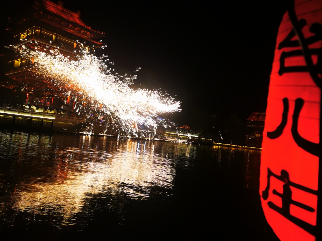 夜游更是重头戏。火龙钢花如流星雨落,水上花船巡游、非遗火壶、船形街河声演出与灯光秀串联成视觉盛宴,让游客沉浸于“越夜越精彩”的运河夜色。