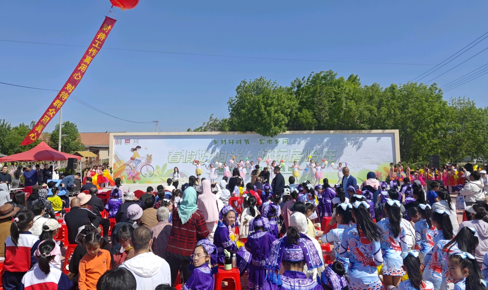 同时,乡村美育活动精彩纷呈,扎染、泥塑、剪纸手工体验有序开展,以巧手创作浸润童心。非遗胡集说书精彩上演,地道乡音讲述民俗故事,传承本土文化记忆。乡村舞台上,少儿才艺轮番亮相,趣味运动会激情开赛,丰富文体活动充分展现少年活力。老式农具实物陈列展出,直观还原旧时农耕风貌,引导青少年珍惜美好生活。