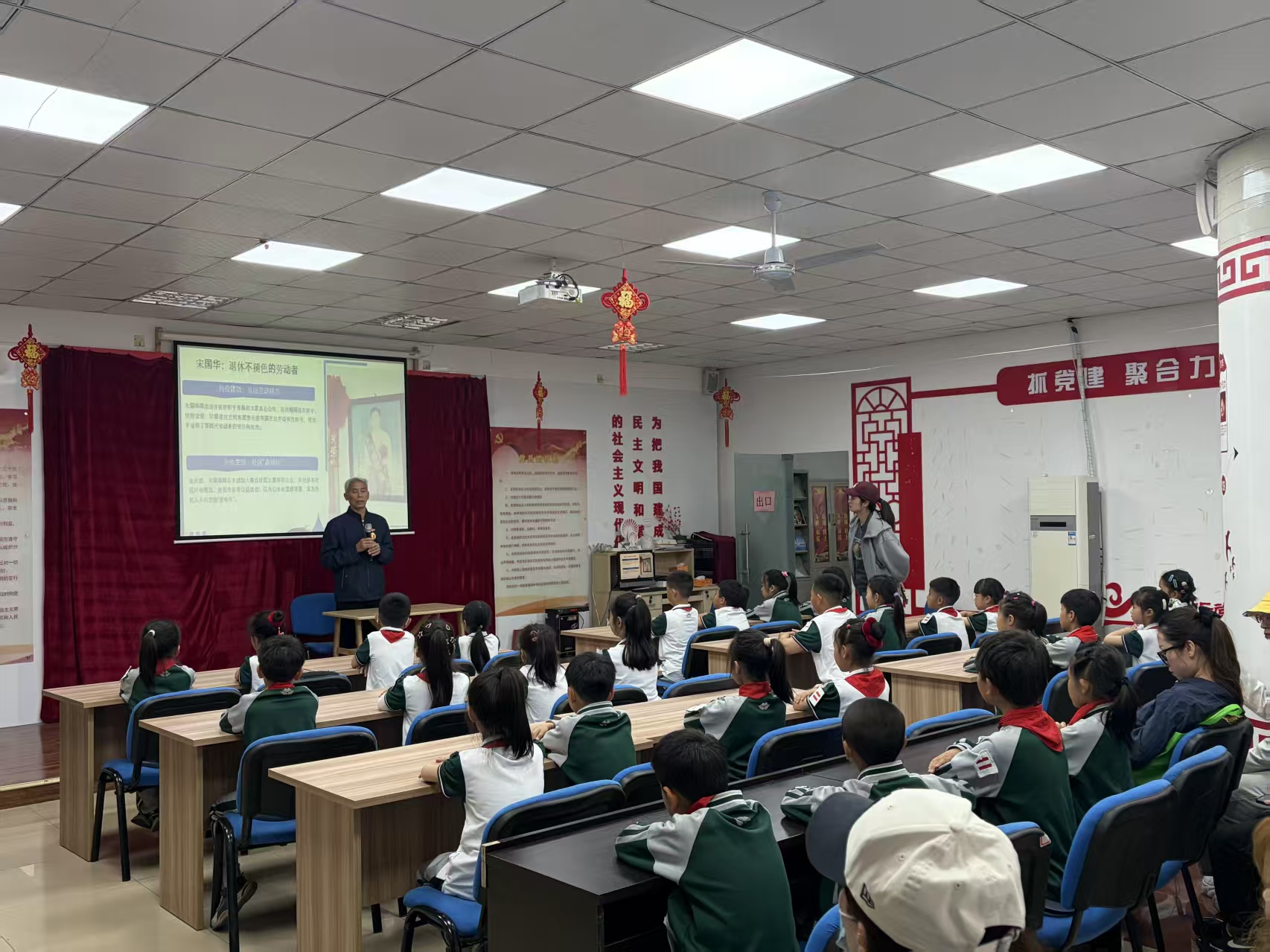 活动特邀市级劳动模范宋国华走进社区。宋老师结合自身在岗敬业奉献、退休后热心志愿服务的经历,讲述坚守岗位、服务邻里的感人故事,用朴实语言诠释劳模精神与劳动价值,同学们认真聆听、踊跃互动,在心中播下崇尚劳动、致敬榜样的种子。