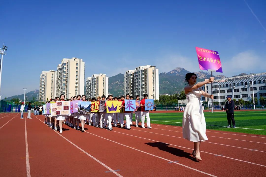 4月29日上午,山东服装职业学院2026年田径运动会在运动场开幕。学院党委副书记、院长马培安出席开幕式并宣布运动会开幕,党委委员、副院长陈健主持,党委委员、组织人事处处长王志荣,党委委员、党委(院长)办公室主任杨庆福出席,各系、相关部门主要负责同志参加。