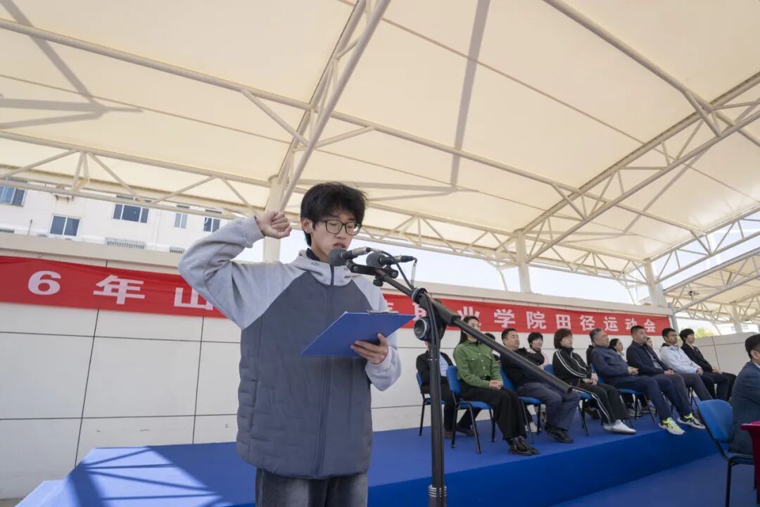 马培安致辞,他代表学院向运动会的召开表示热烈祝贺。他指出,体育是教育的重要组成部分,是立德树人的关键载体,是培育健全人格、锤炼坚强意志的重要途径,更寄托着学院培育全面发展人才的初心使命。他希望全体师生以本次运动会为新的起点,把赛场上的拼搏精神、协作精神、进取精神,融入到学习、工作和生活中,以更饱满的热情、更昂扬的风貌、更务实的作风,凝心聚力、奋勇争先,共同书写学院高质量发展的崭新篇章。