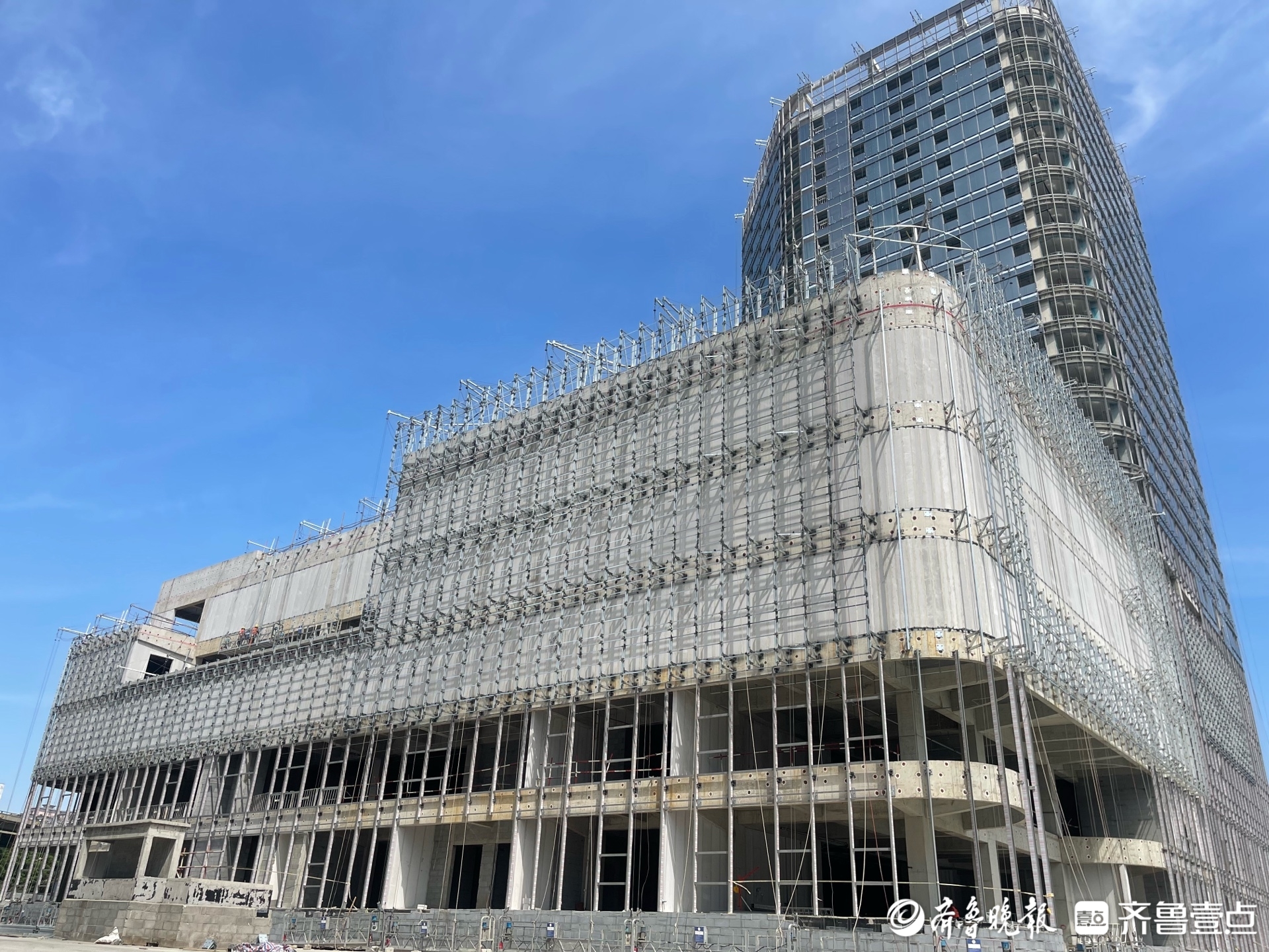 该项目位于水屯路与北园大街交汇口,中泺河蜿蜒相伴,大明湖近在眼前,实现“湖、河、园” 三位一体生态加持。目前,项目主体已全面完工,外立面施工与内部装修同步提速,预计今年年底正式竣工。