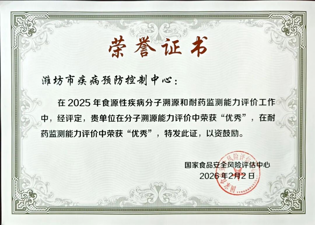 此次“双优秀”的获评,充分体现了潍坊市疾控中心在食源性致病菌监测领域的技术积累与质量管控能力,也标志着我市食源性疾病溯源预警与耐药风险识别水平迈上新台阶。下一步,中心实验室将持续深化监测技术应用,强化区域食品安全风险研判与快速响应能力,筑牢守护群众“舌尖安全”的坚实防线。