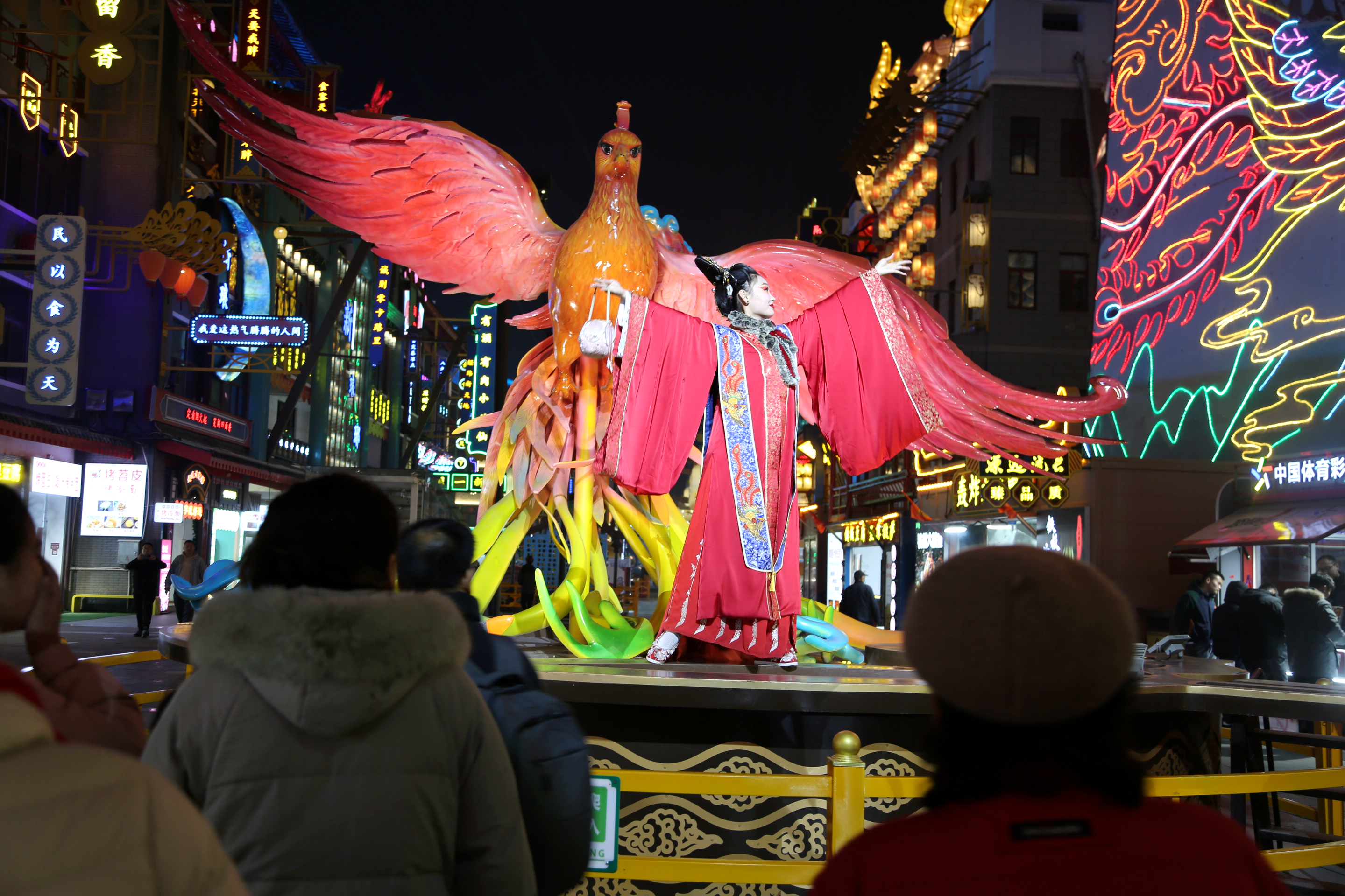 新琅琊街区则以国潮夜游点亮涑河岸边。青砖灰瓦的复古建筑、百米灯笼长廊氛围感拉满;160余家美食摊位汇聚各地风味;文创店铺、沉浸式体验项目吸引年轻群体打卡消费。集夜宴、夜购、夜娱、夜演于一体,把沂河光影与琅琊文化深度融合,成为兰山夜经济的核心地标,让游客在流光溢彩中感受“夜游琅琊、乐购商城”的独特魅力。