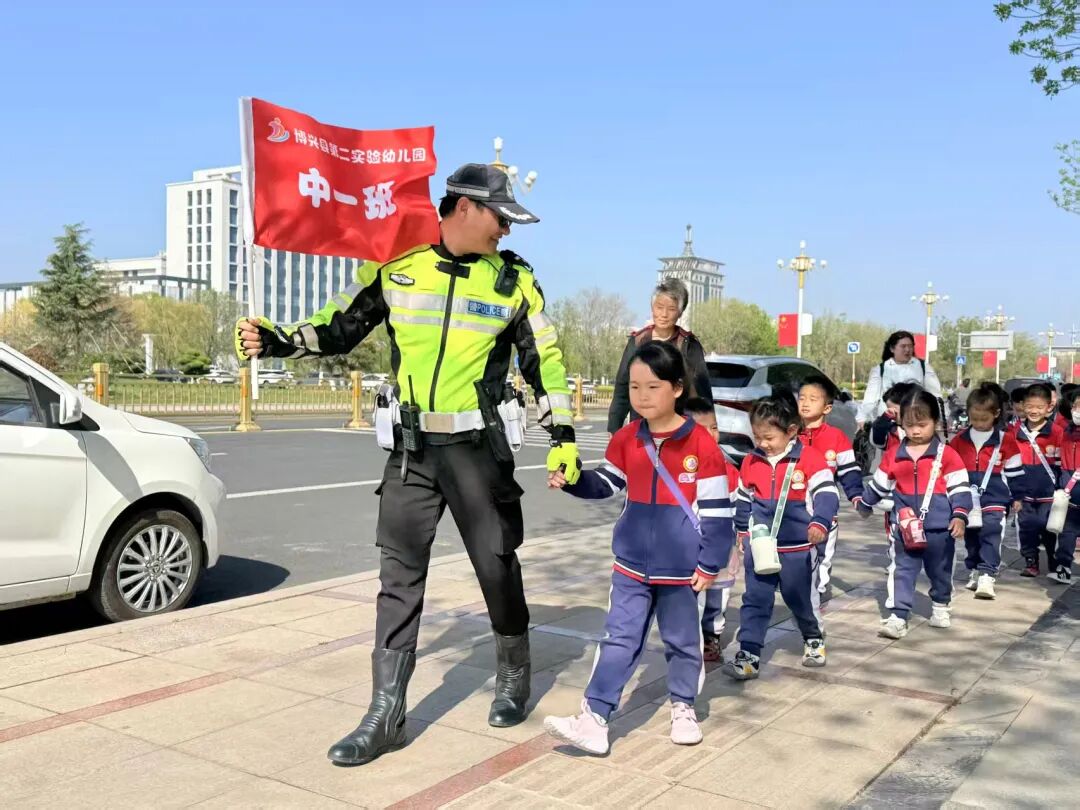 博兴县第二实验幼儿园开展春游活动,为全力保障师生出行安全,博兴大队精心部署、全程护航,用坚守筑牢校园周边交通安全防线。