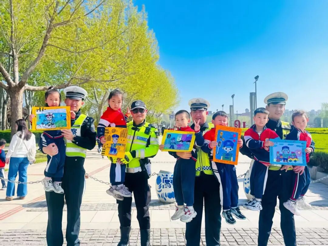 在交警的贴心保障下,全体师生安全顺利完成春游行程。活动结束后,小朋友们将亲手绘制的精美画作送给执勤交警,用稚嫩的笔触和纯真的笑容表达最真挚的感谢。