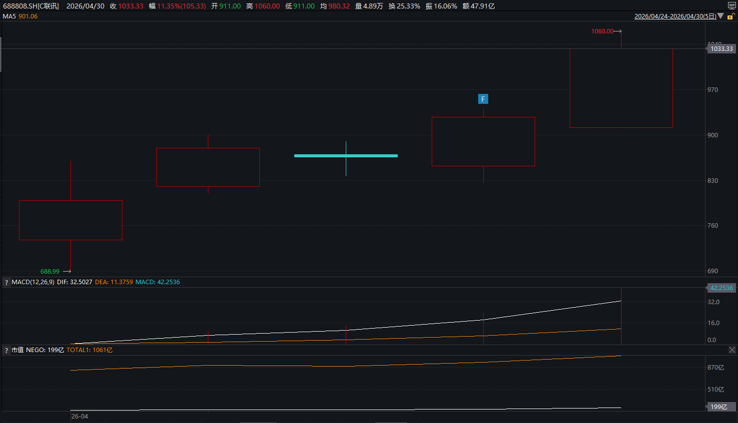 截至4月30日,C联讯仅上市五个交易日。来源:Wind