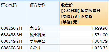 截至4月30日,C联讯股价仅次于寒武纪、源杰科技、贵州茅台,在A股市场股价排名第四。来源:Wind