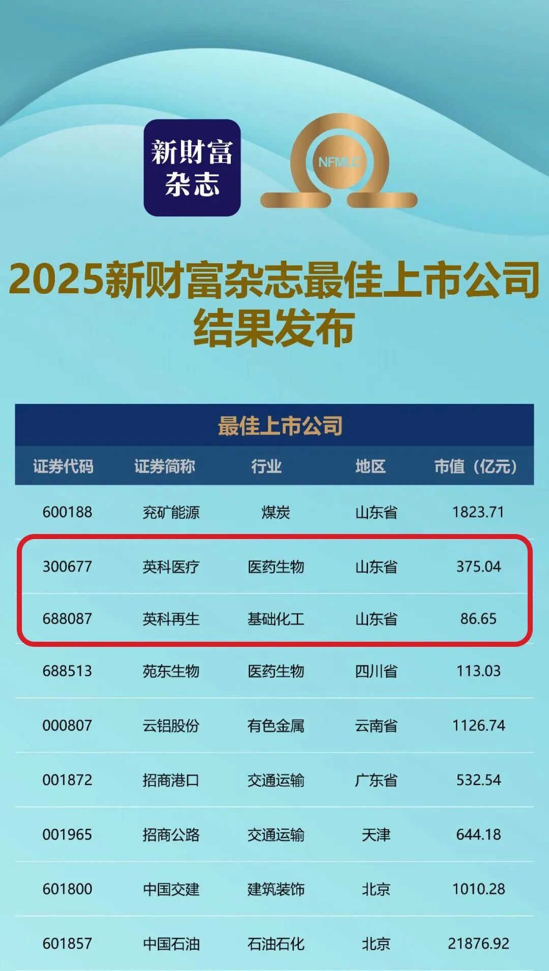 此次荣誉的获得,不仅彰显了英科在资本市场的综合竞争力,也进一步印证了英科医疗与英科再生分别在全球医用耗材与器械行业、资源循环再利用行业中的领先地位与长期价值创造能力。