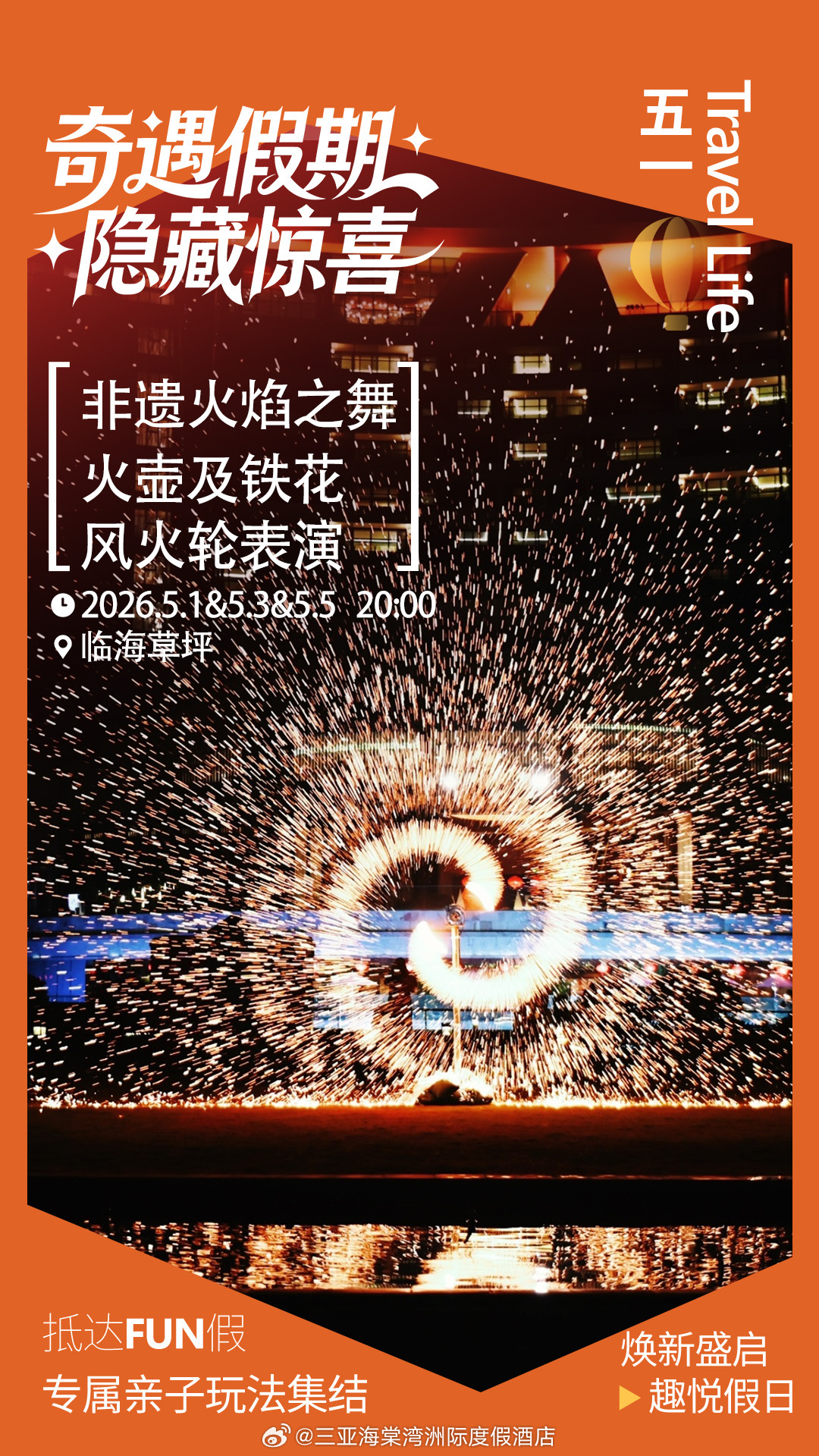 三亚海棠湾洲际度假酒店的“奇遇5.1假期”系列活动则将演艺做到了极致。根据酒店官方微博发布的预告,“五一”期间每晚20点,非遗火焰之舞、火壶及铁花表演将准时上演,绚烂的铁花将在夜空中绽放,成为三亚湾最亮丽的风景线。此外,酒店还推出了篝火派对、日暮回音仪式、儿童浮潜体验等活动,让游客足不出酒店就能度过一个充实的假期。