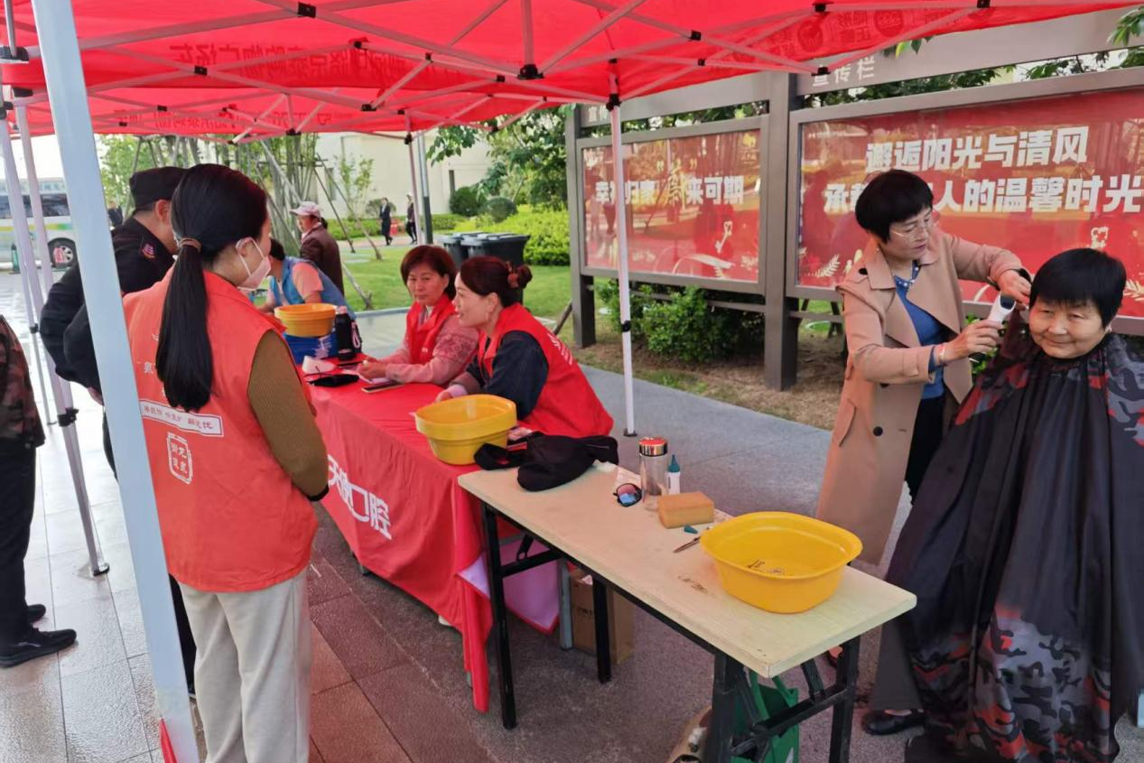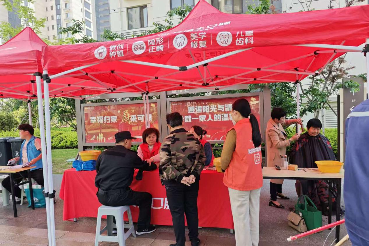 现场设有免费理发、健康义诊、便民零食铺等多个服务项目,吸引了众多居民前来参与,现场气氛热烈温馨。免费理发区,理发师动作娴熟、耐心细致,一边剪发一边与老人聊家常。张阿姨理完发后笑着说:“年纪大了,腿脚不利索,现在理发服务送到家门口,真贴心!”一旁的义诊区域同样人气高涨。医务人员为居民免费测量血压、血糖,进行初步口腔检查、龋齿筛查和视力测试、眼病筛查,并提供慢性病、常见病的健康咨询。不少中老年居民带着体检报告前来咨询,医务人员耐心解答并给出专业建议。
