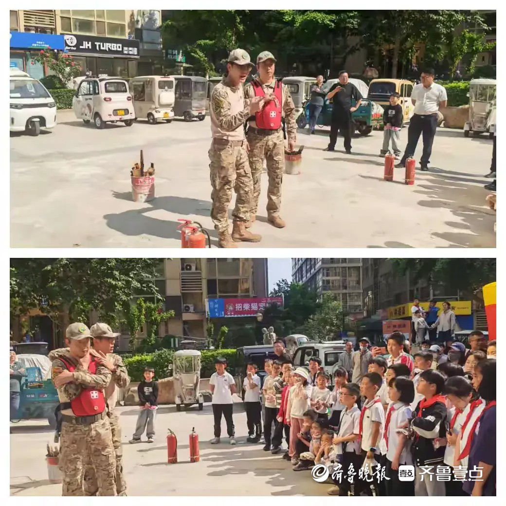 活动中,来自历下区砺兵退役军人应急服务中心的志愿者,向大家讲解了消防知识、消防器材的使用、防灾减灾知识,并演示消防逃生、应急避险、海姆立克急救等技能。