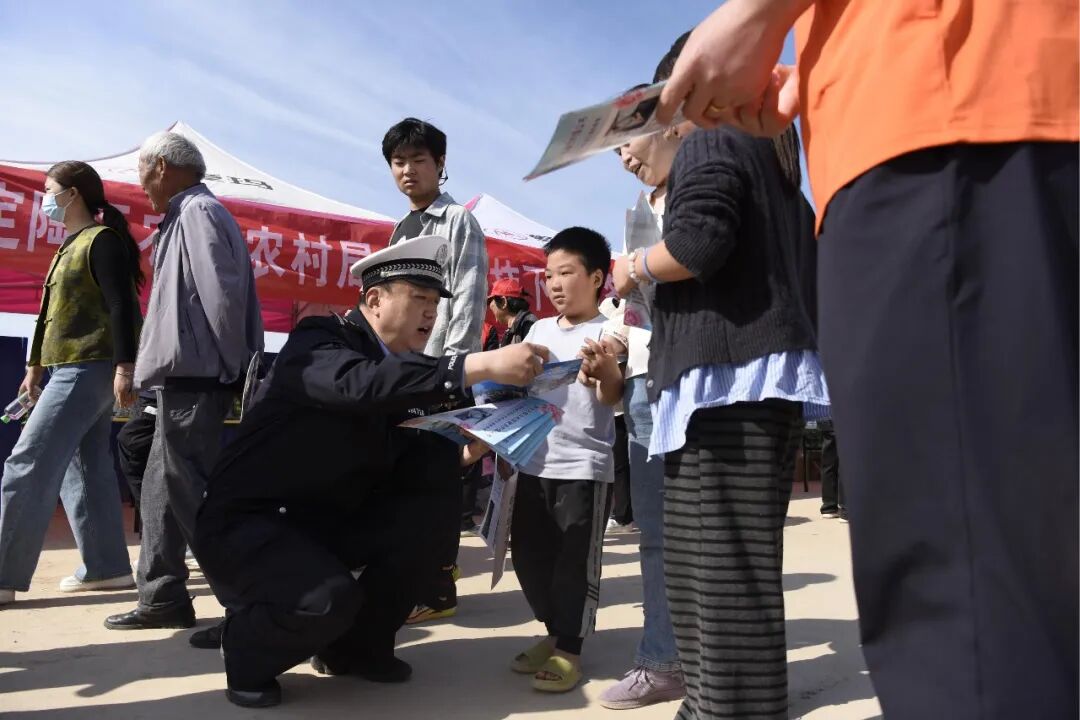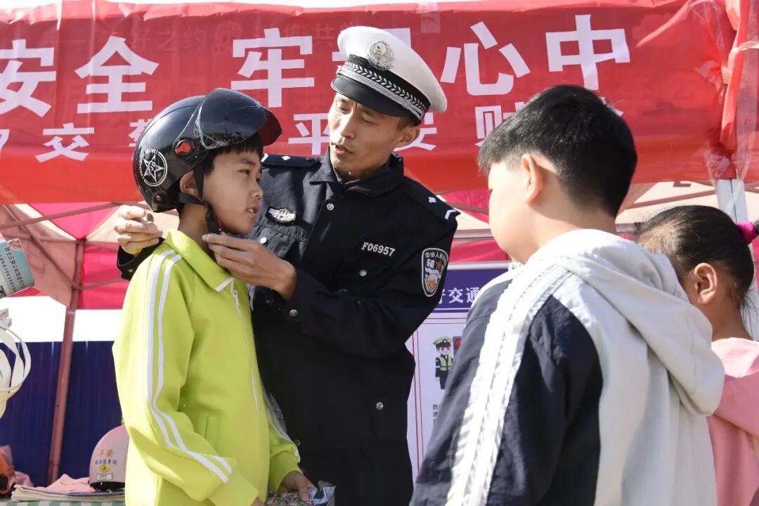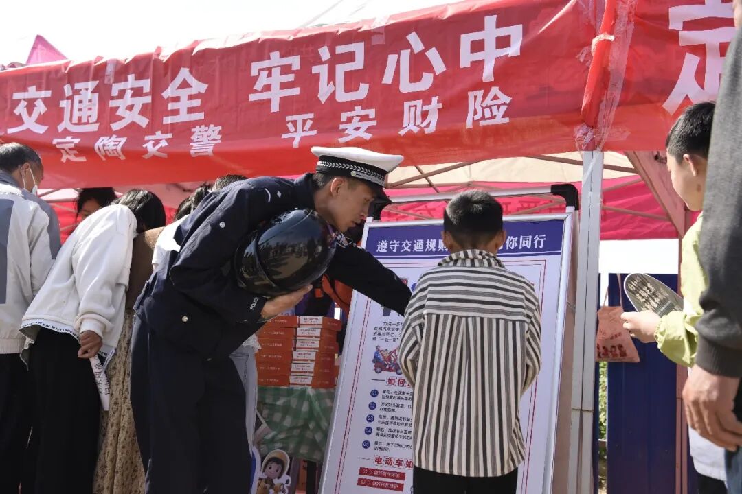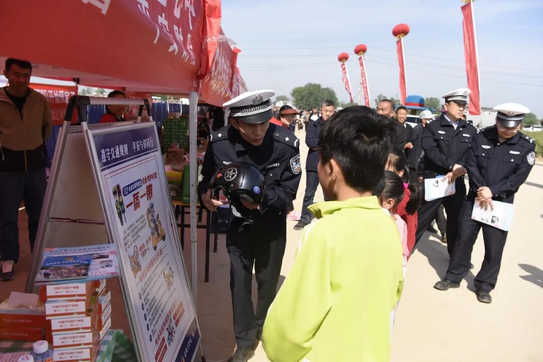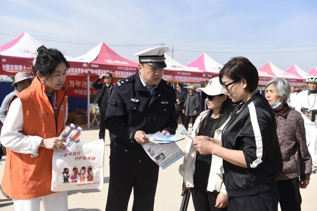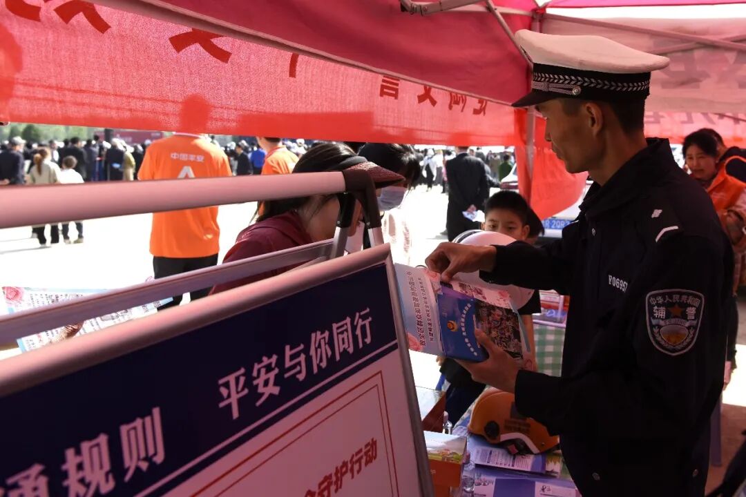 活动中,定陶交管大队精心布置交通安全宣传展区,整齐摆放警示宣传展板,专门设立交管业务咨询服务台。民辅警化身安全宣传员,向过往游园群众、周边村民免费发放交通安全宣传手册、安全主题台历、安全头盔、便民抽纸等宣传小礼品,拉近与群众的距离。