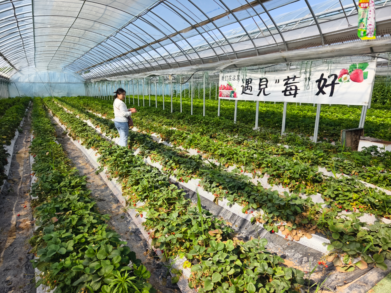走进鱼台县滨湖街道乡村振兴片区的西支河采摘露营示范园,连片的日光温室大棚整齐排列。大棚里,红润饱满的草莓垂挂在绿叶间,一串串色泽鲜亮的西红柿挂满藤蔓。不少市民游客提着篮子穿梭其中,孩子们踮起脚尖摘下成熟的果实,欢声笑语充满了整座大棚。