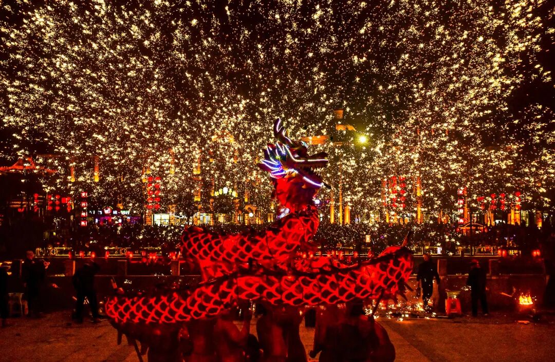 火龙在铁花中翻滚腾跃,时而盘旋,时而俯冲,与漫天铁花共舞。这是属于中国的浪漫,是刻在骨子里的震撼。