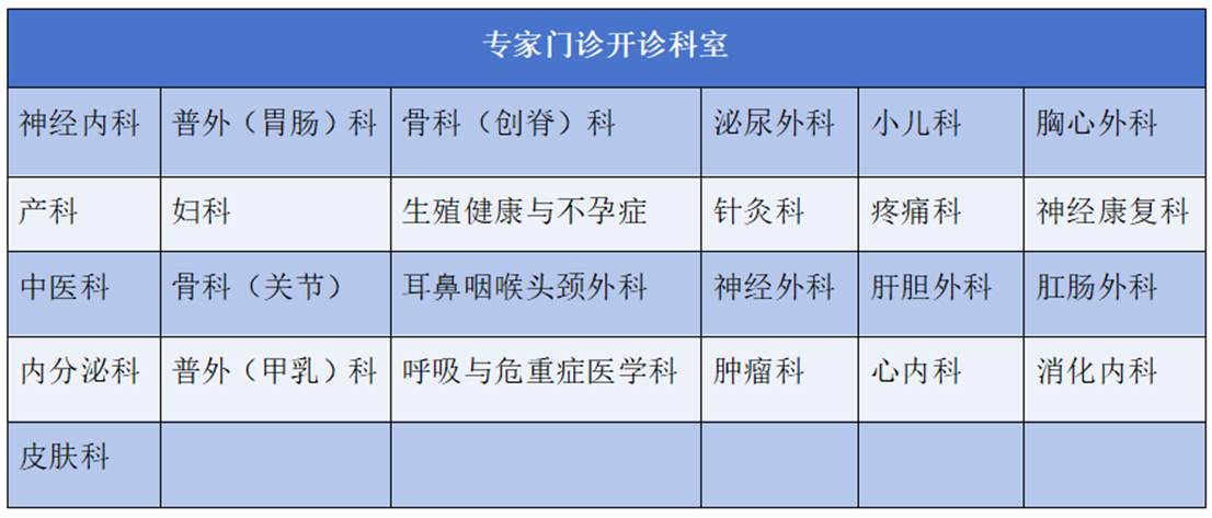 门诊开诊科室具体安排