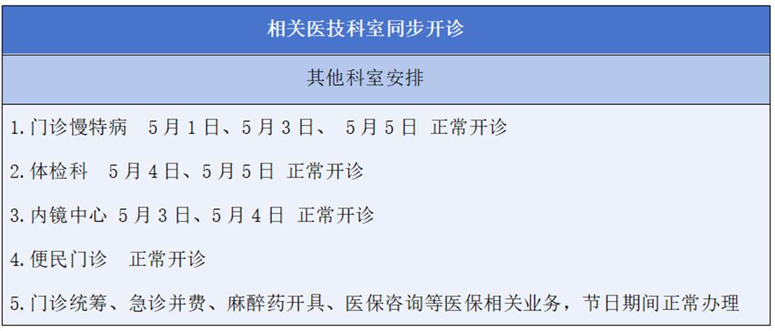“五一”假期青岛市第三人民医院门、急诊安排如下: