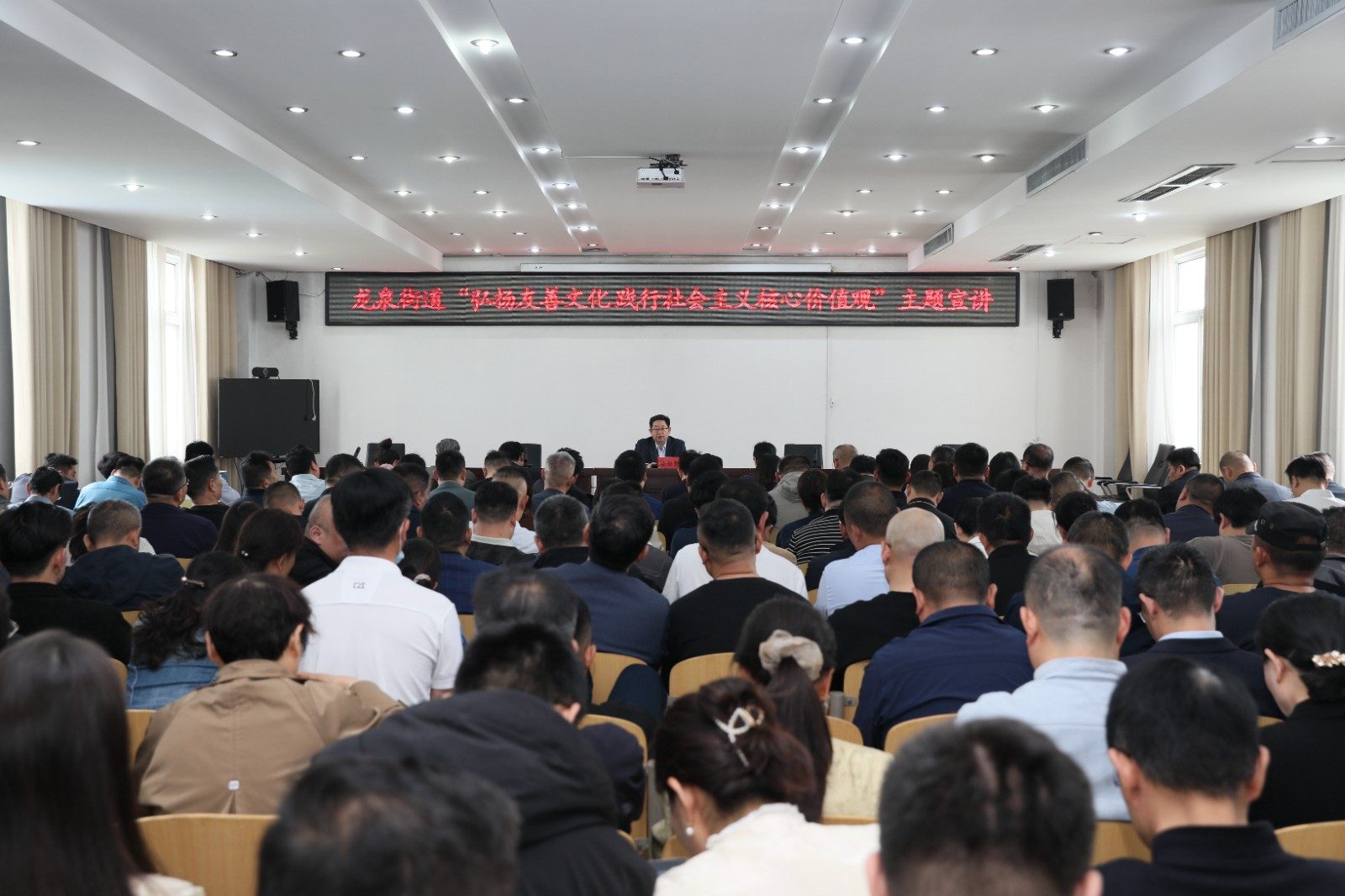 为进一步培育和践行社会主义核心价值观,弘扬友善精神,4月27日上午,滕州龙泉街道新时代文明实践所开展“弘扬友善文化践行社会主义核心价值观”主题宣讲活动。街道全体领导干部,全体机关干部,各片区书记、主任,各村党支部书记、网格党支部书记(网格长)共297人参加活动。