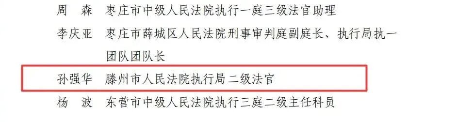 近日,山东高院下发《山东省高级人民法院关于对全省法院执行工作表现突出集体和个人予以表扬的通报》。滕州法院干警孙强华获评全省法院执行工作表现突出个人。(大众新闻记者孟令洋)