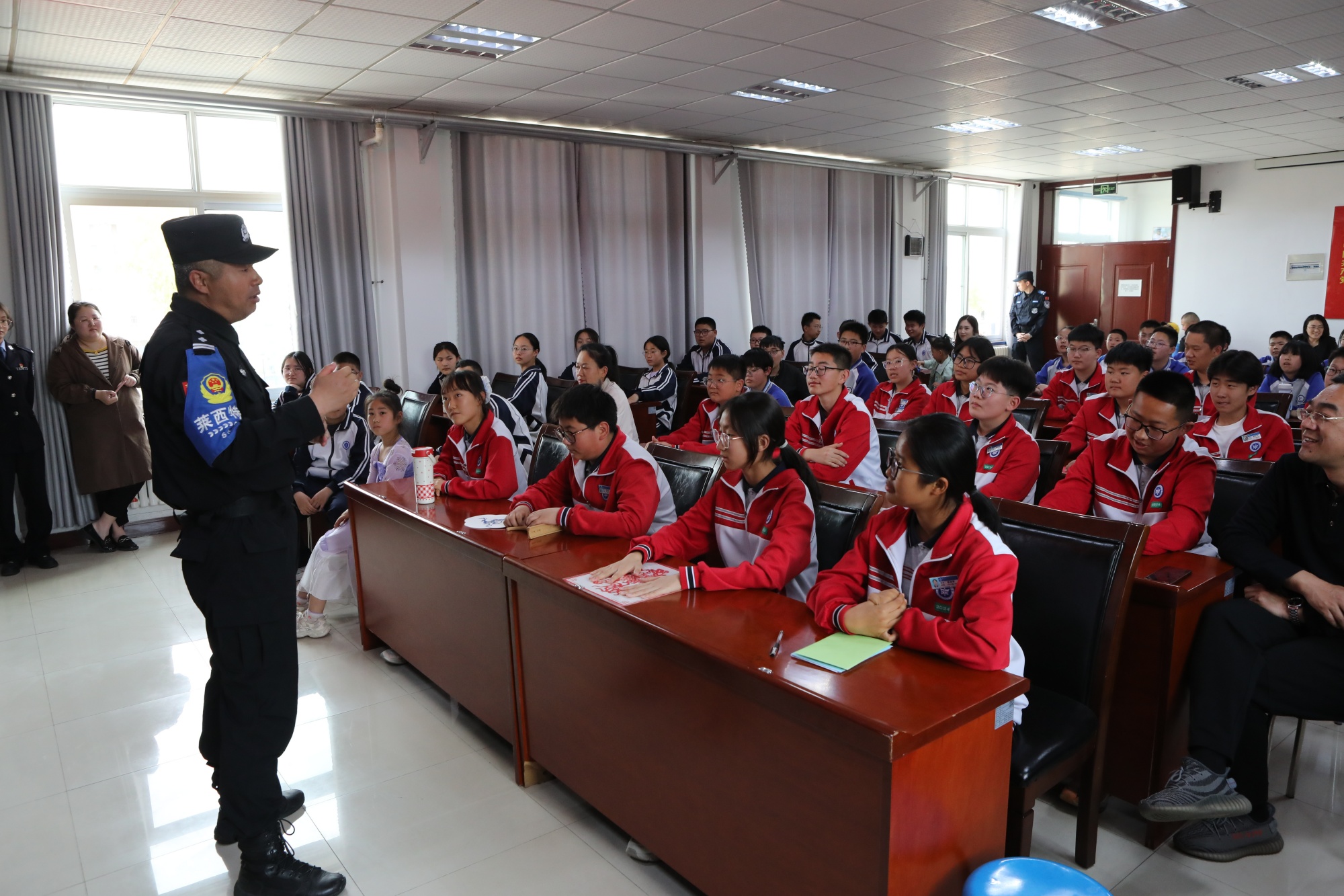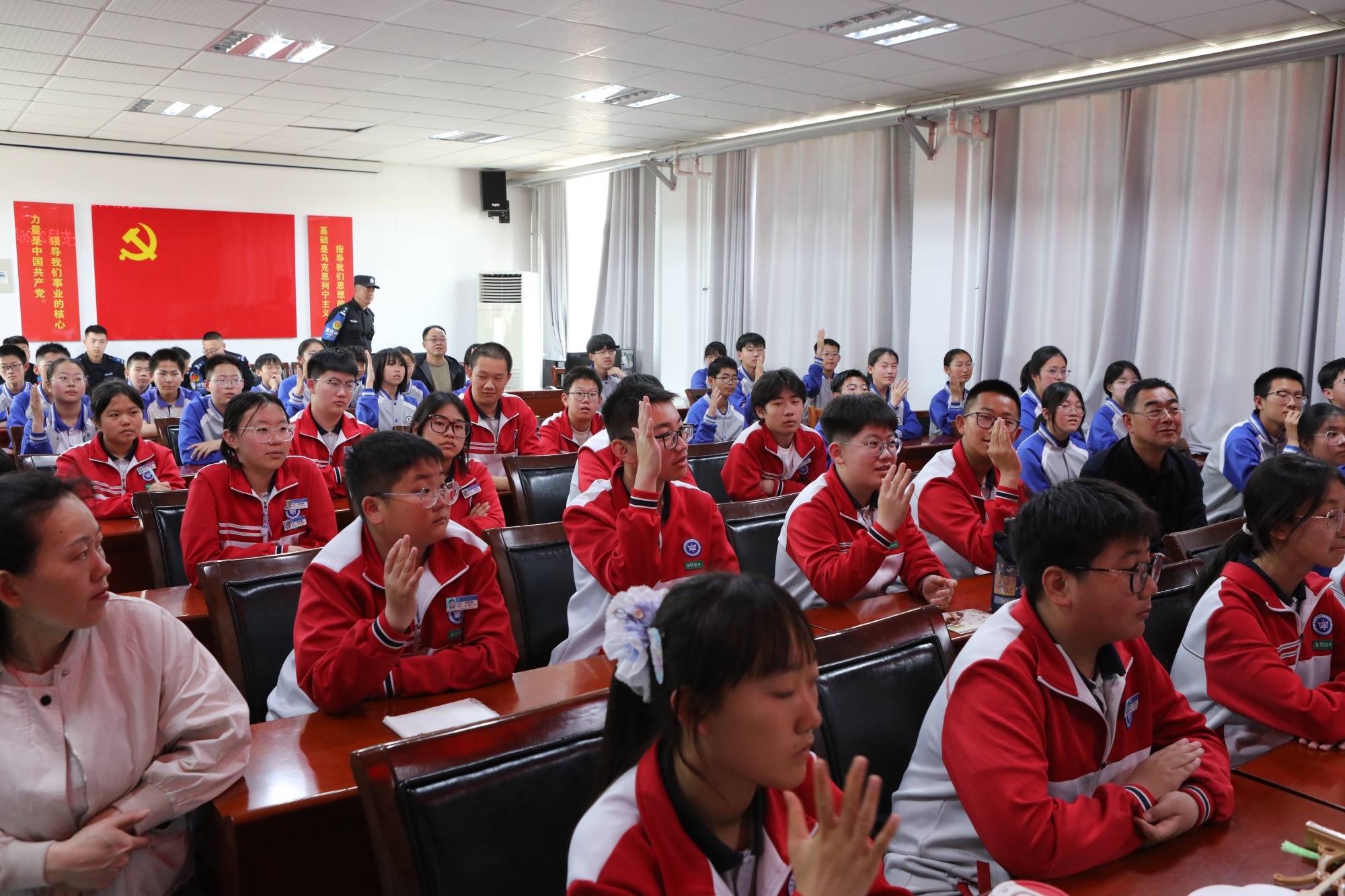 14时许,法治安全课堂率先开讲,来自刑侦、禁毒、派出所的民警结合青少年成长特点,用通俗易懂的语言、贴近校园生活的真实案例,系统讲解了校园防欺凌、夏季防溺水、电信网络诈骗防范及拒毒防毒等关键知识;同学们认真听讲、频繁互动、踊跃提问,在轻松氛围中筑牢了安全防范的思想防线。随后举行的暖心结对交流环节,特警队员以小组为单位,与同学们围坐畅谈,队员们分享了日常执勤、艰苦训练的故事,也讲述了守护一方平安的坚守与担当,让同学们深刻体会到平安背后的默默付出;同学们则敞开心扉,分享安全知识学习的收获,倾诉成长路上的梦想与困惑,一场心与心的交流,让警民情谊在春日里悄然升温。