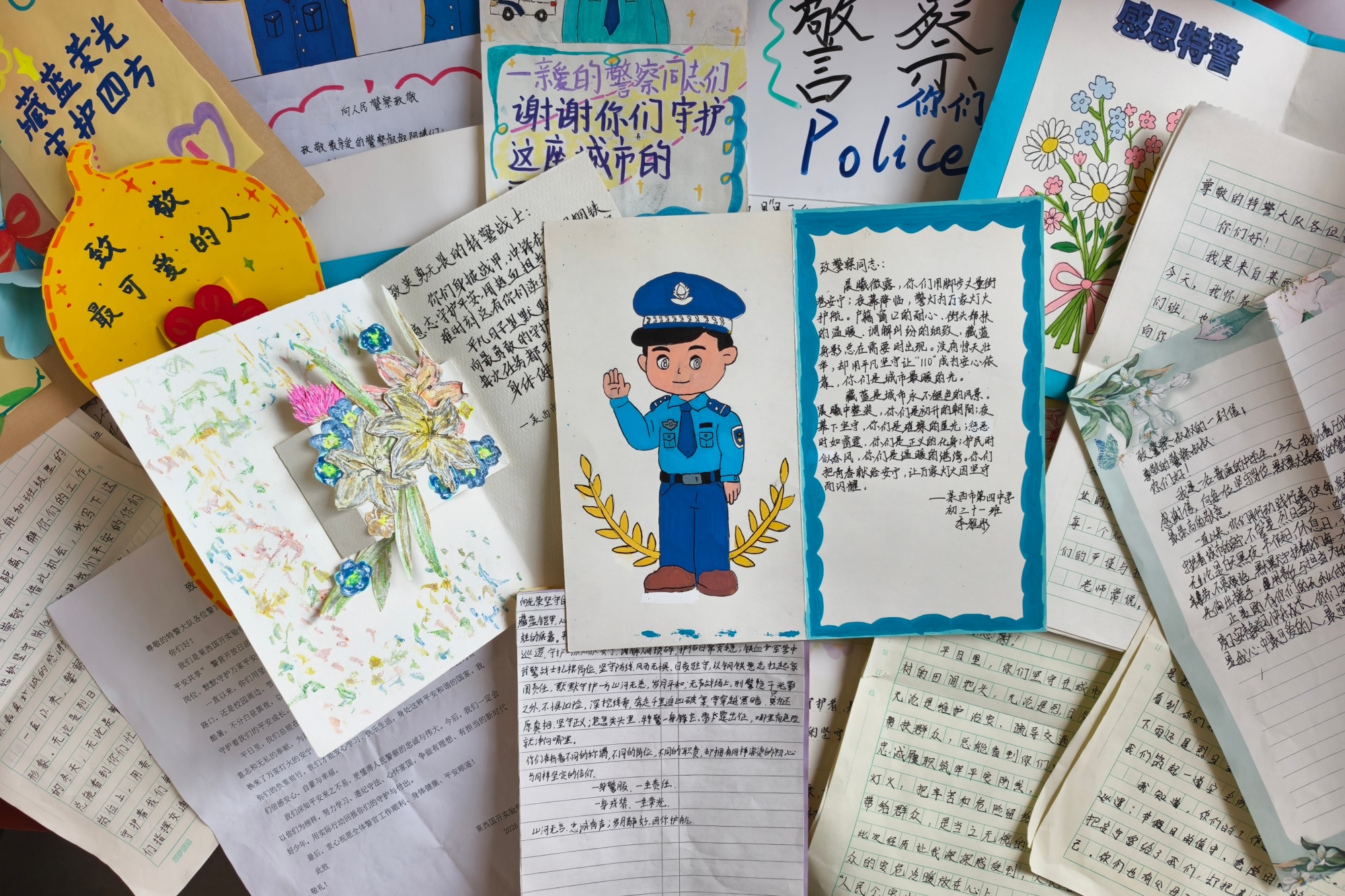 活动在持续的掌声喝彩、赞叹和欢呼中悄悄接近尾声,学生代表饱含深情地向特警队员赠送了亲手绘制的贺卡与感谢信,一笔一画间都写满真挚敬意;特警队员则回赠安全宣传手册与笔记本,传递着平安与期盼。