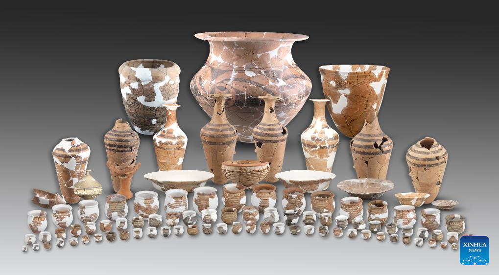 This illustration shows pottery unearthed from the Nanzuo Site in northwest China's Gansu Province. (Xinhua)