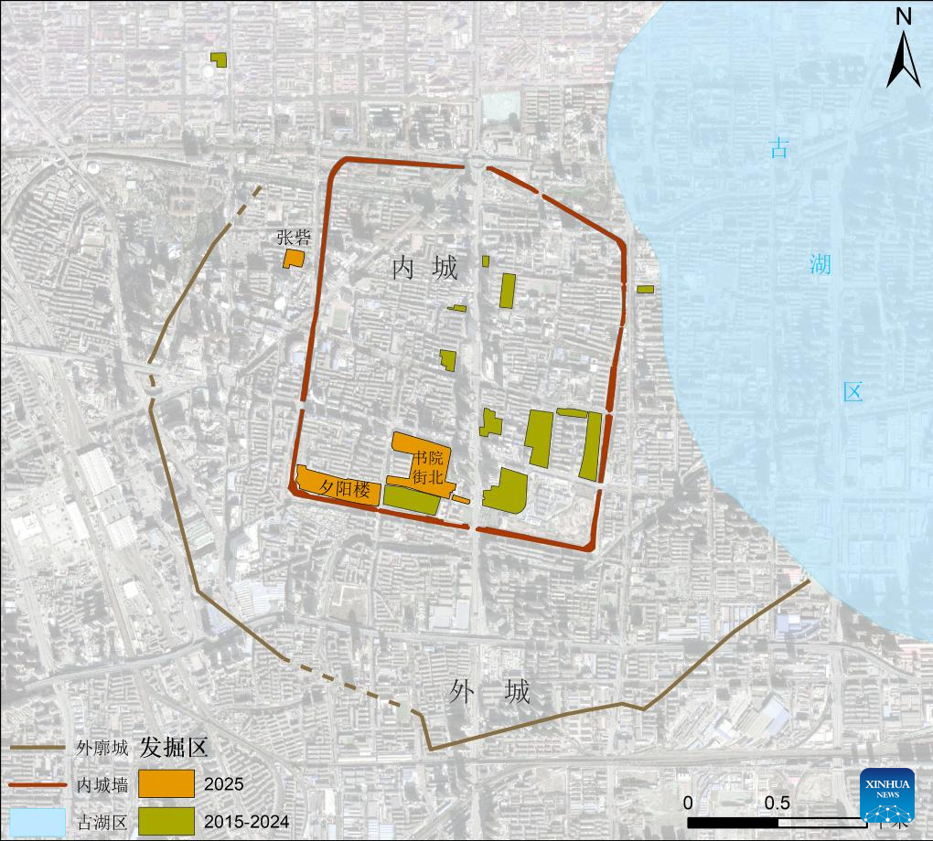 This illustration shows 2025 excavation locations of Shangcheng Site in Zhengzhou, central China's Henan Province. (Xinhua)