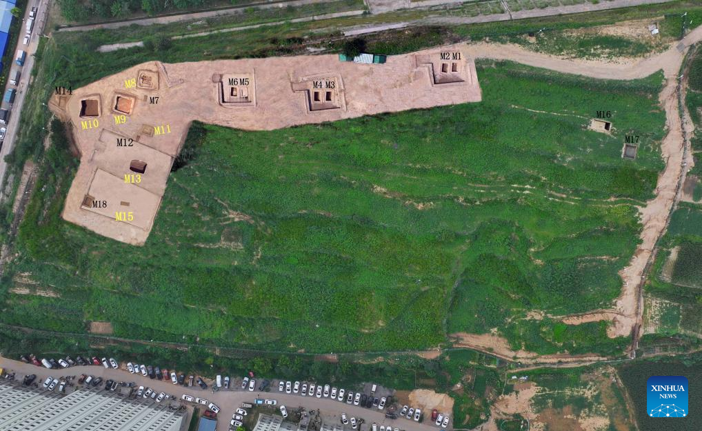 This file aerial drone photo shows the distribution of tombs at the Zhongcun site in Xiyang County, north China's Shanxi Province. (Xinhua)