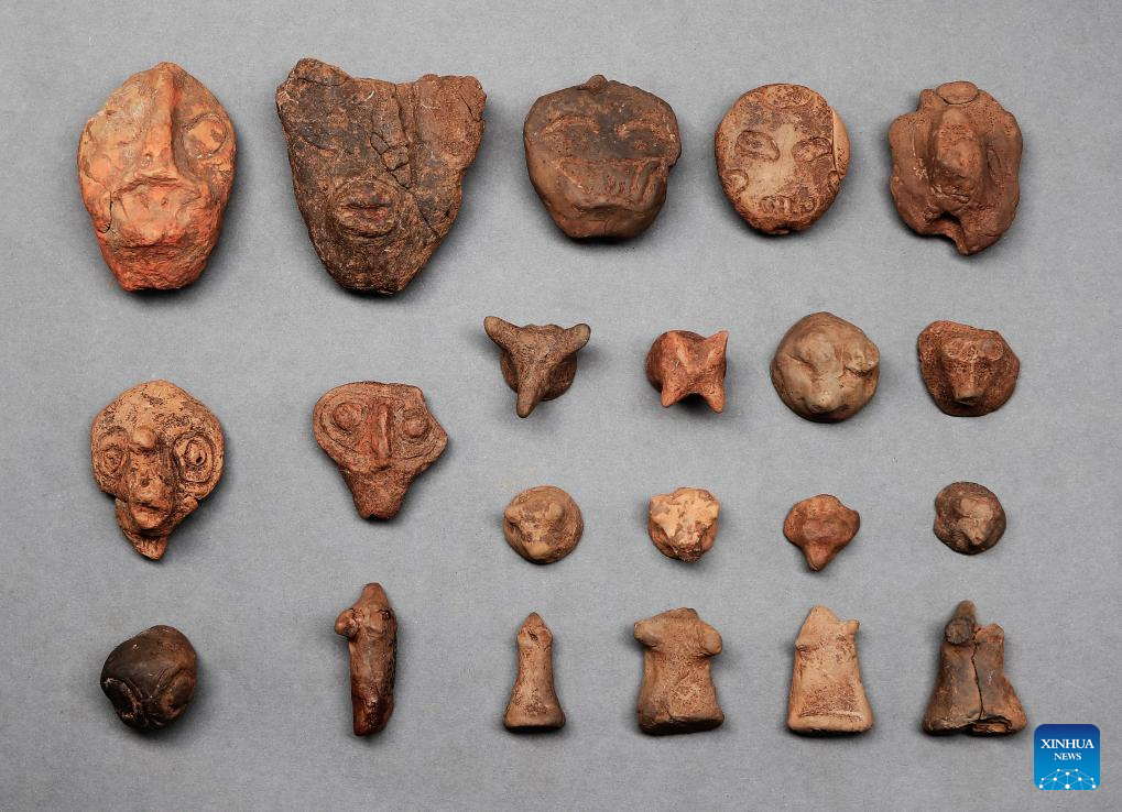 This file photo shows pottery figurines from the Peiligang site, Xinzheng, central China's Henan Province. (Xinhua)
