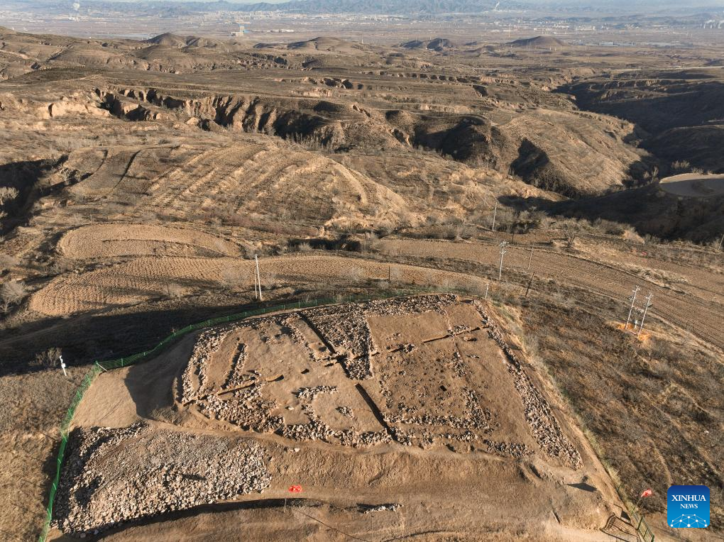 This file aerial drone photo shows the core area of the Nanzuo Site in northwest China's Gansu Province. (Xinhua)
