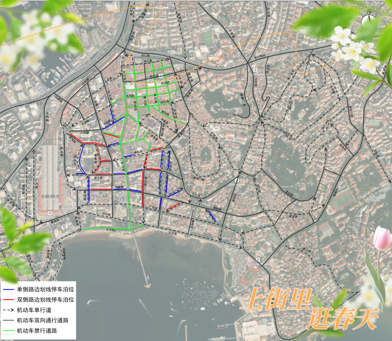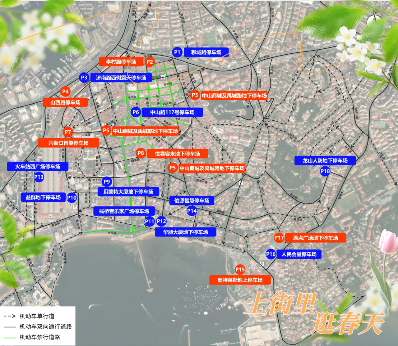 “五一”小长假去哪儿玩?上街里逛春天是很多市民游客的选择。近日,青岛历史城区发布“五一”出行交通攻略。近5000个停车泊位实时查询、路边划线停车泊位灵活补给,助游客轻松直达春日花漾现场。