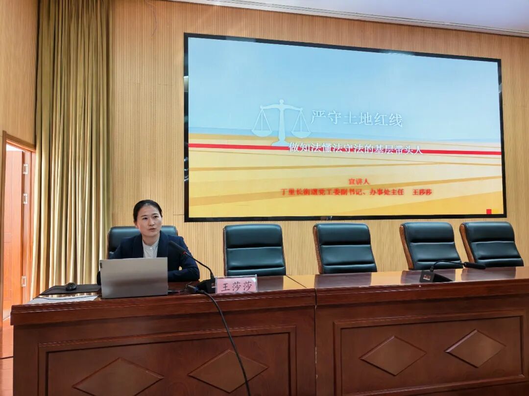 土地政策宣讲环节由街道办事处主任王莎莎宣讲,街道全体工作人员、各行政村党支部书记、自然村负责人参与。宣讲紧扣耕地保护、用地规范、土地相关法律条例等重点内容,贴合辖区日常基层工作实际进行细致讲解,厘清工作中的易错要点,引导全体参会人员树立依法依规开展土地管理的工作思维,真正做到严守土地红线,做知法懂法守法的基层带头人。
