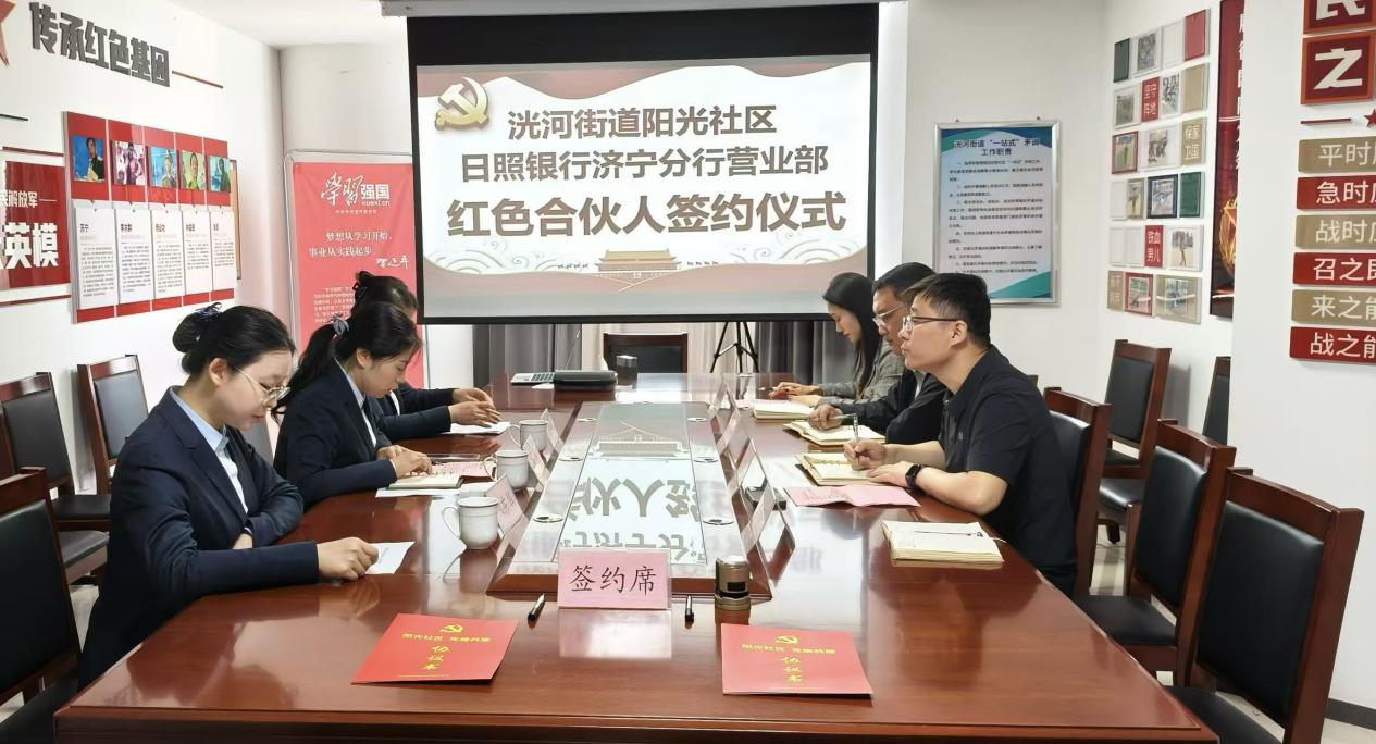 为持续深化党建引领基层治理,构建资源共建共治共享格局,激活辖区红色治理资源,4月28日,济宁高新区洸河街道阳光社区党委与日照银行济宁分行营业部党支部,举行党建引领“红色合伙人”签约仪式。