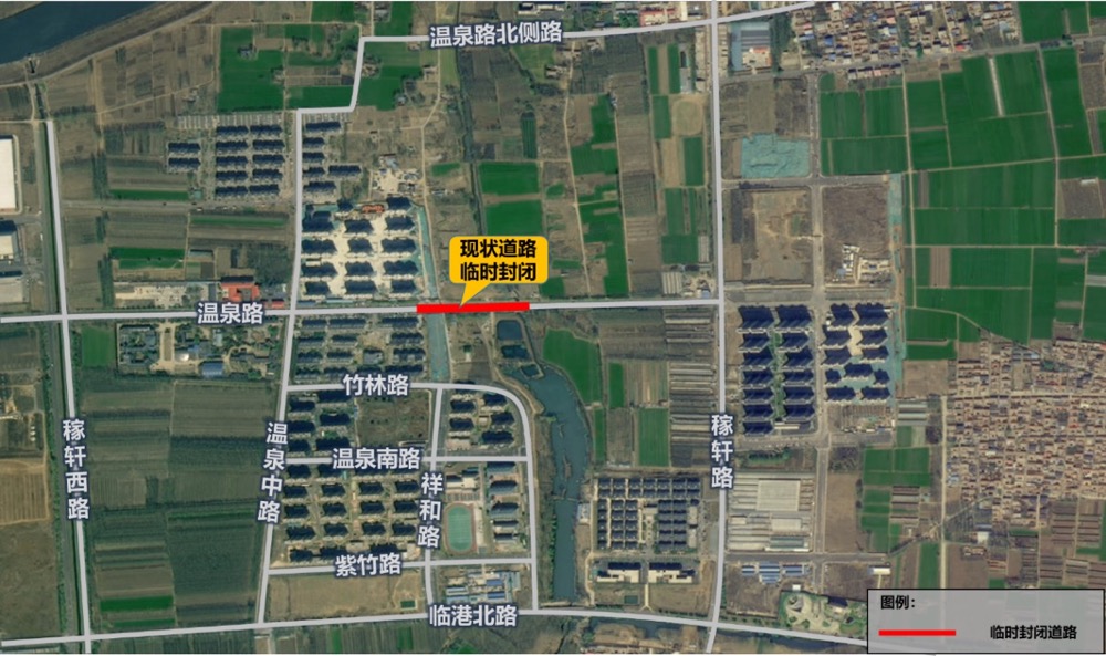 施工期间,过境车辆及行人可通过温泉路北侧便道、温泉中路、稼轩路、临港北路等道路分流或绕行。