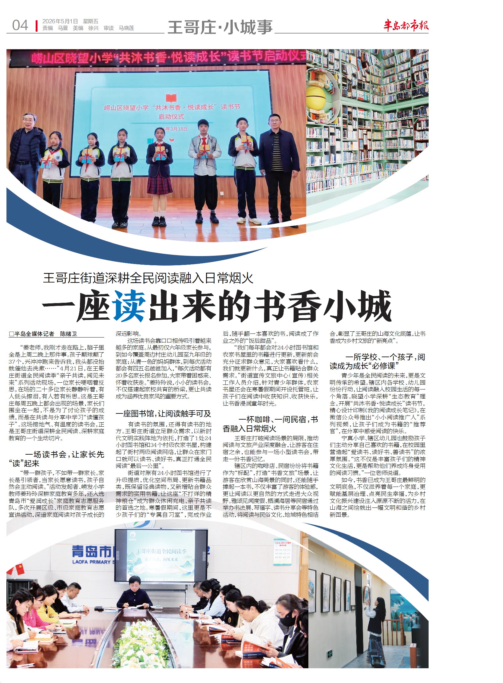 如今,书香已成为王哥庄最鲜明的文明底色,不仅滋养着每一个家庭,更赋能基层治理、点亮民生幸福,为乡村文化振兴建设注入源源不断的活力,在山海之间绘就出一幅文明和谐的乡村新图景。(半岛全媒体记者 陈绪卫)