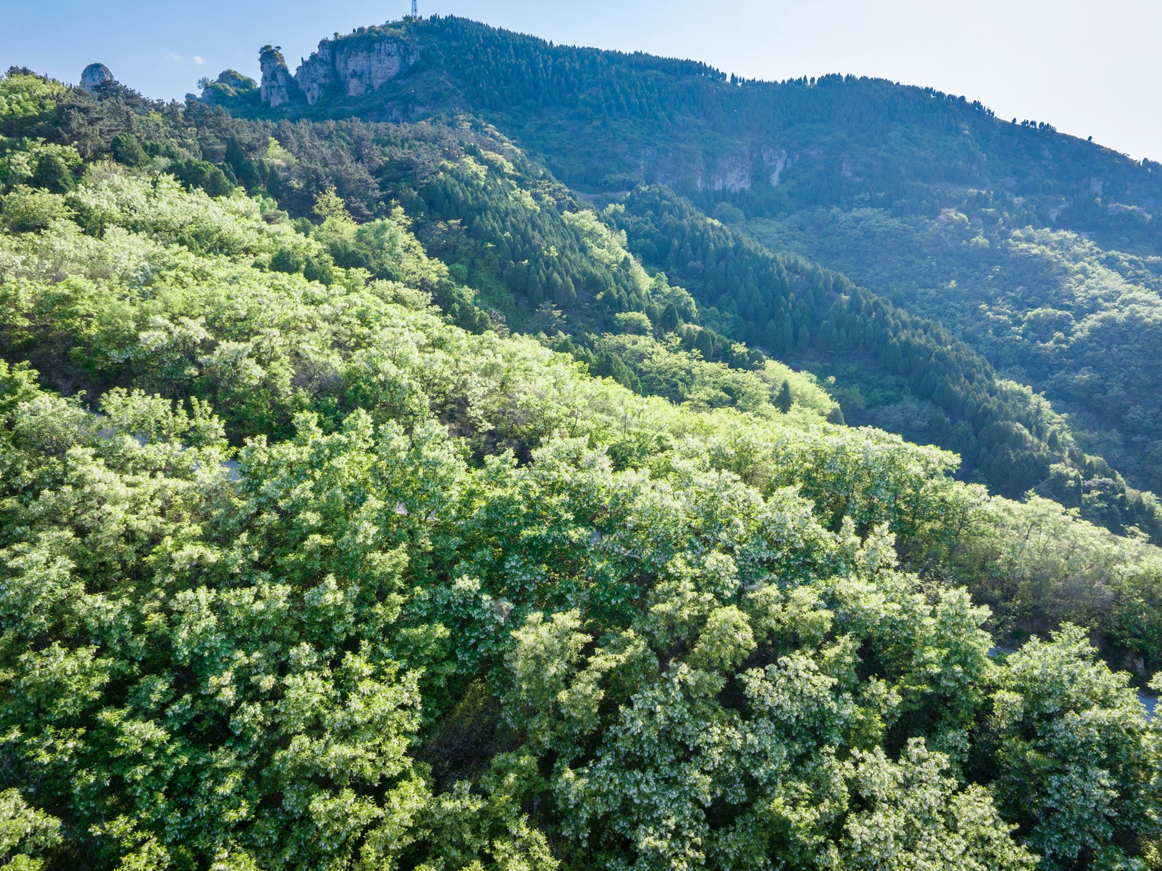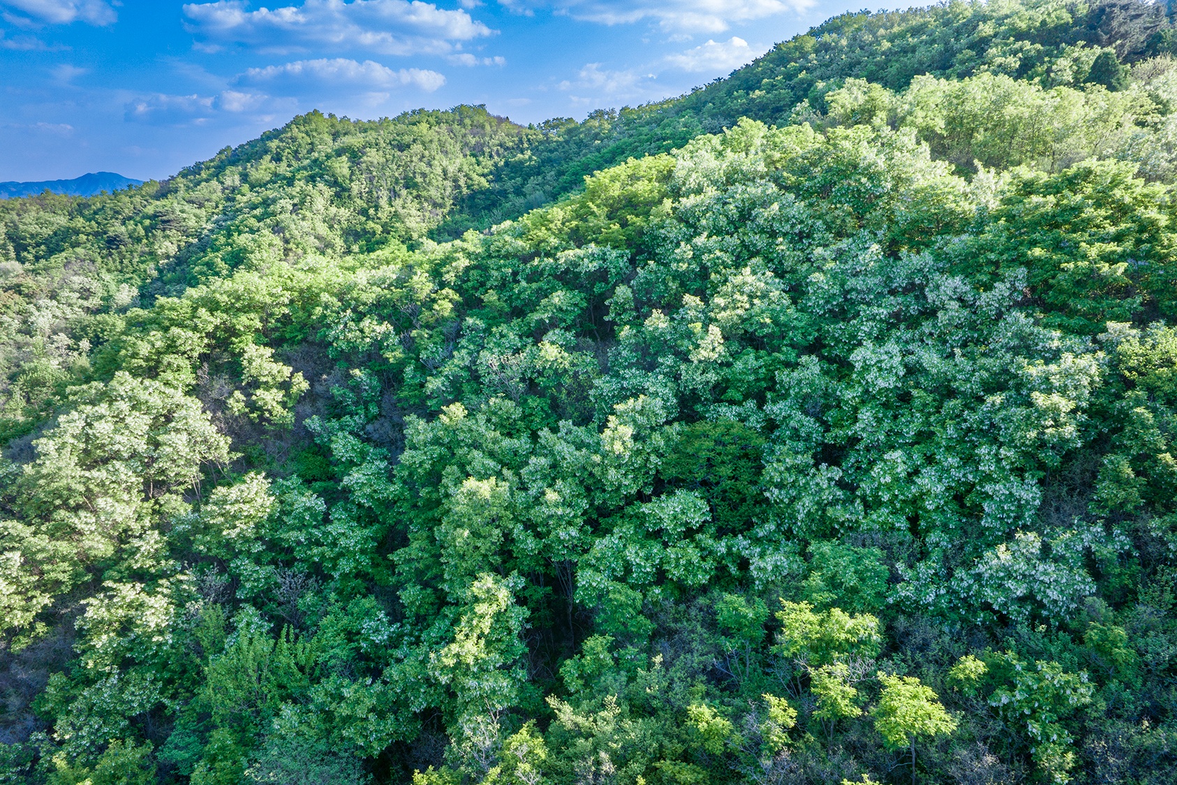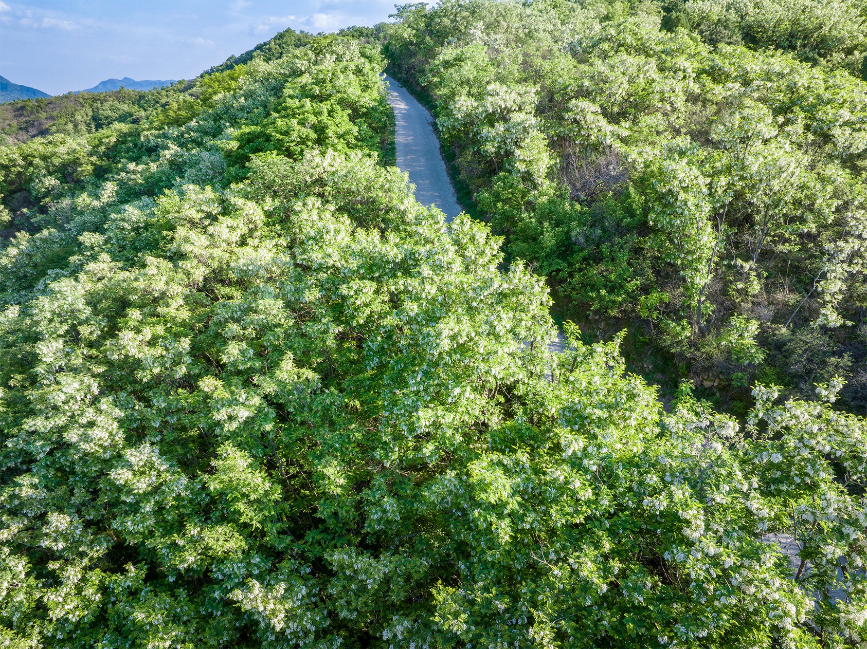 槐花大放,山里的槐花开得正好。笔者驱车来到济南南部山区的毛家峪村,看到漫山遍野尽是槐花,花如白云直晃人眼。在槐林间漫步,浓浓的槐花香气沁人心脾,让人流连。(大众新闻记者杨润勤摄影张宝贤)