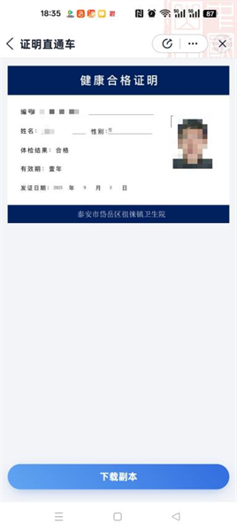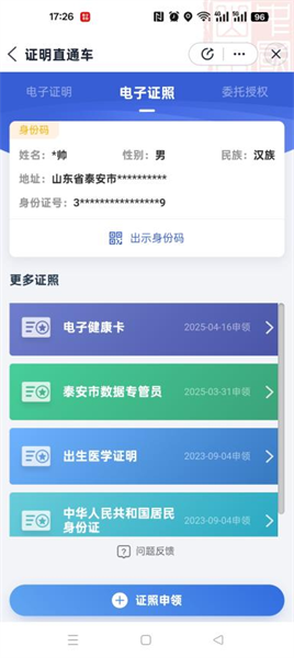 如今,电子健康证已实现跨部门、多场景、全领域互认互通,实现化妆品生产、食品、药品等领域以及酒店、旅馆、公共浴室、理发店、美容店等场所的全面应用。对从业人员而言,一部手机即可完成健康证申领、亮证等操作,体检合格后最快半天就能在“爱山东”APP泰安分厅领证,告别“排长队、忘带证、多跑腿”的烦恼;执法现场,监管人员可通过“爱山东”APP泰安分厅即时核验证件真伪与有效期,大幅提升执法效率,从源头杜绝假证、过期证问题。