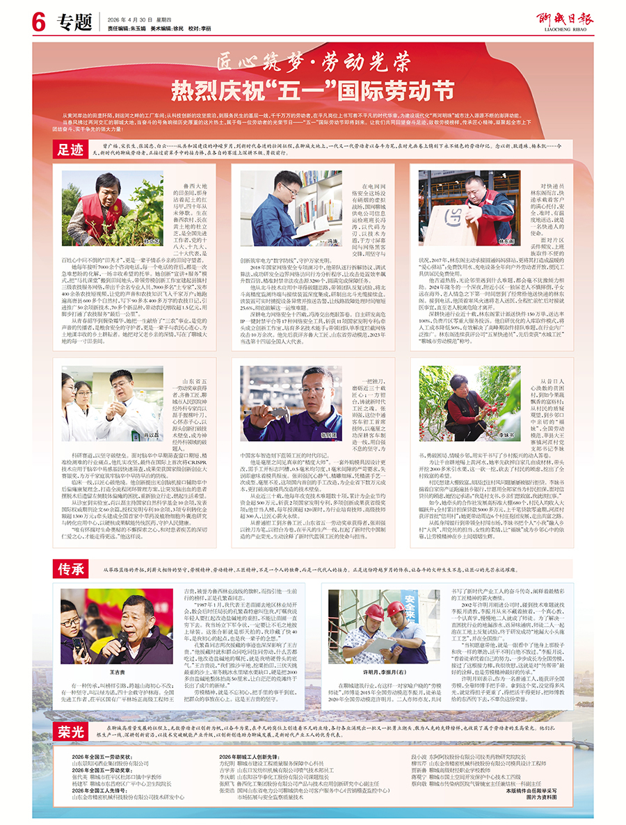 在聊城高质量发展的征程上,无数劳动者以创新为帆,以奋斗为桨,在平凡的岗位上创造着不凡的业绩,各行各业涌现出一批又一批勇立潮头、敢为人先的先锋榜样,也收获了属于劳动者的至高荣光。他们扎根生产一线、深耕创新前沿,以技术突破赋能产业升级,以创新创造助力聊城发展,是新时代产业工人的优秀代表。
