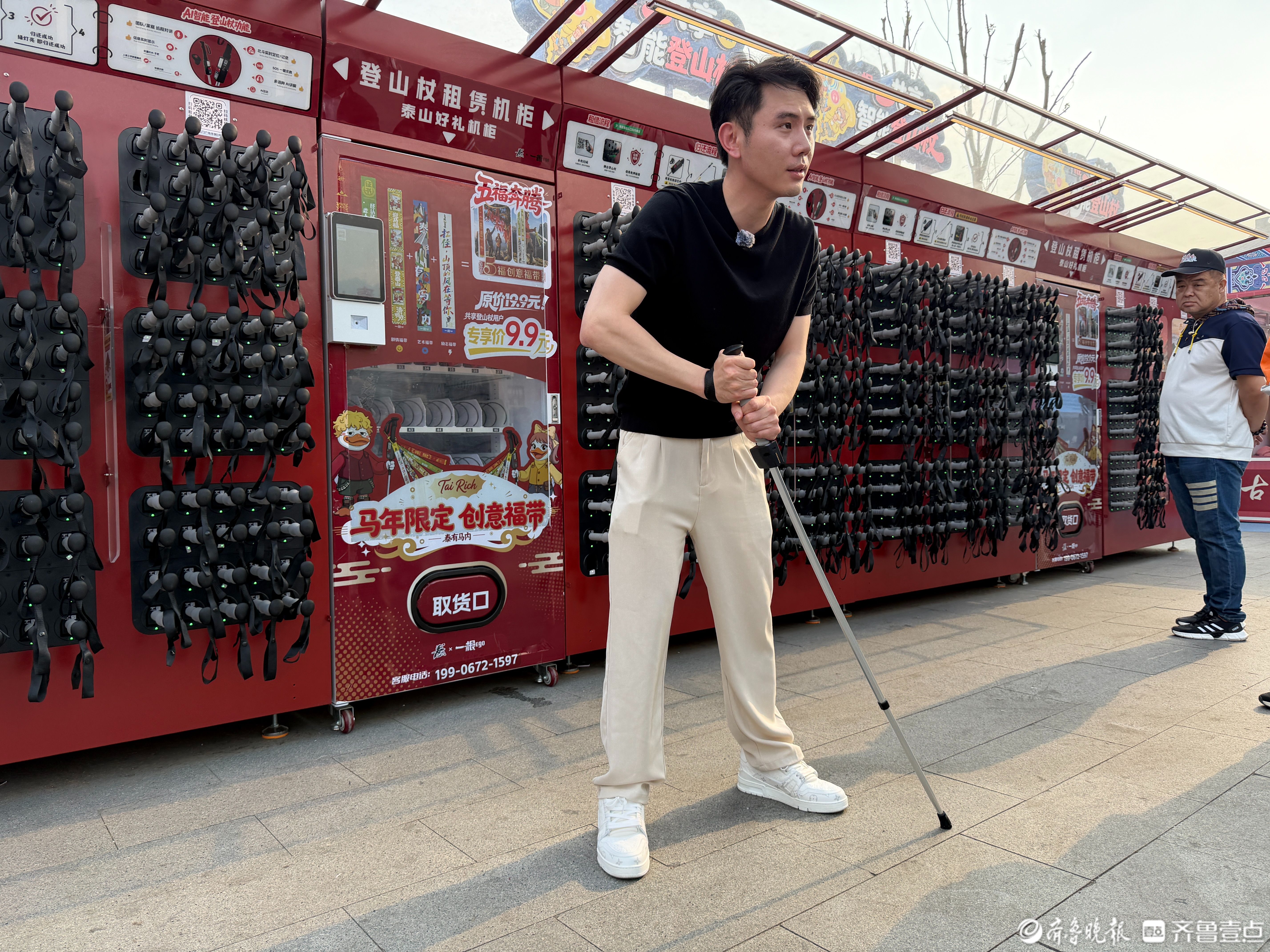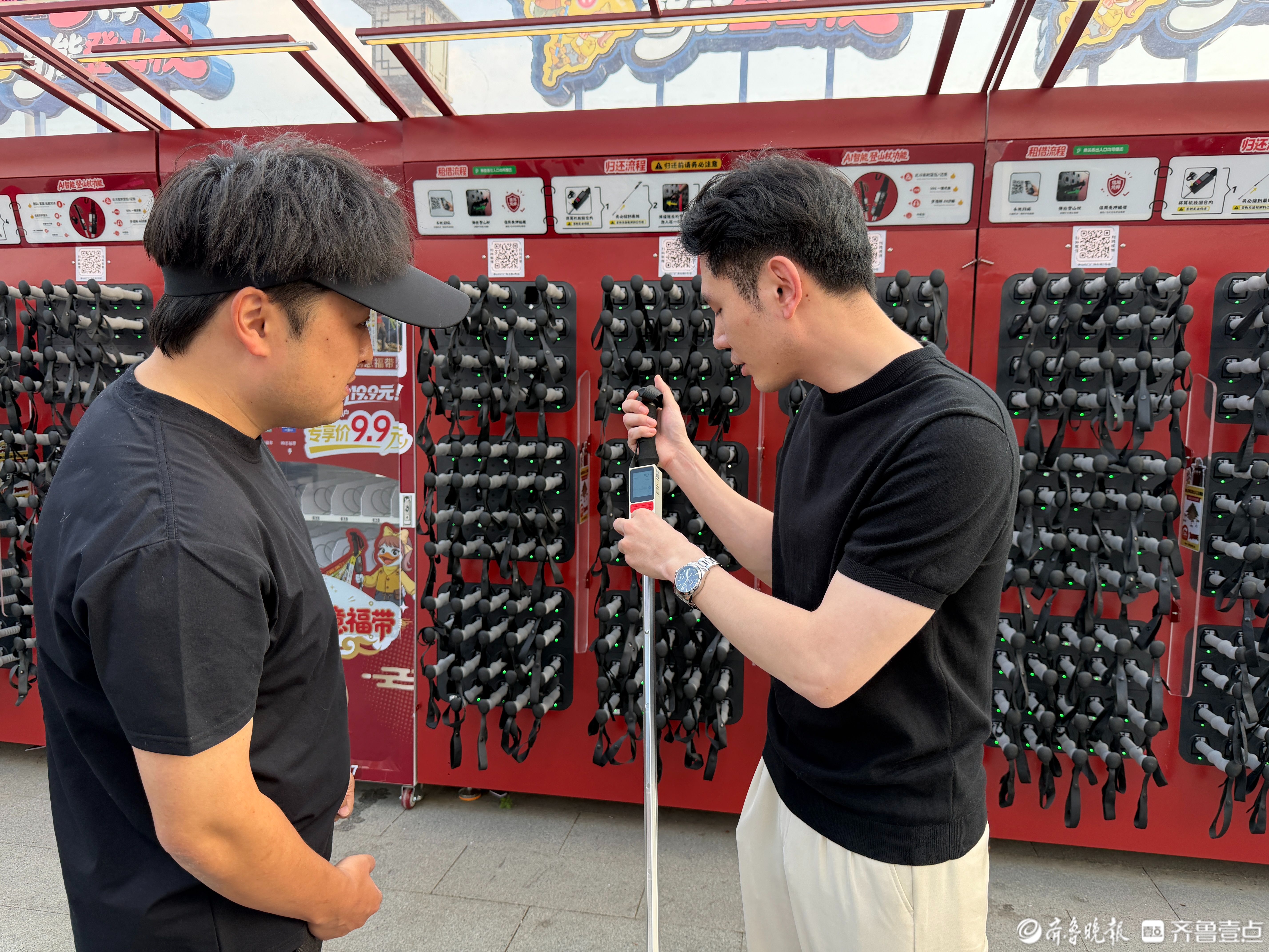 登山告别粗木棍,共享登山杖来了!五一期间1元租12小时游泰山