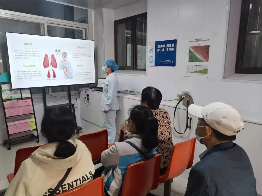 同时,刘丽详细阐释了肺功能检查在哮喘诊断、病情评估及长期随访中的不可替代作用,呼吁广大群众重视这项“像量血压一样简单而重要”的检查,做到早发现、早诊断、早规范治疗。为了让大家获得更全面的健康科普体验,活动现场还安排了呼吸功能康复操现场演示,刘丽亲自示范动作要领,指导参与者规范练习,帮助大家掌握居家自我锻炼技巧,进一步改善肺功能。