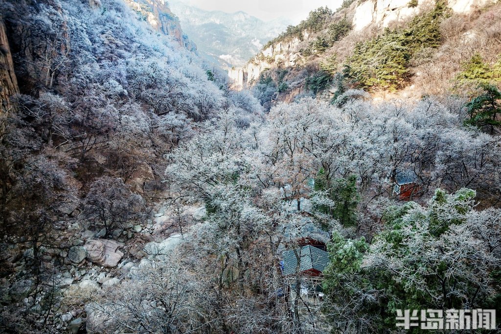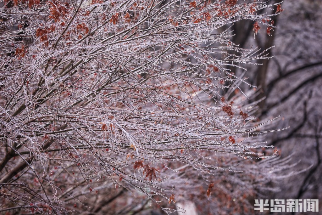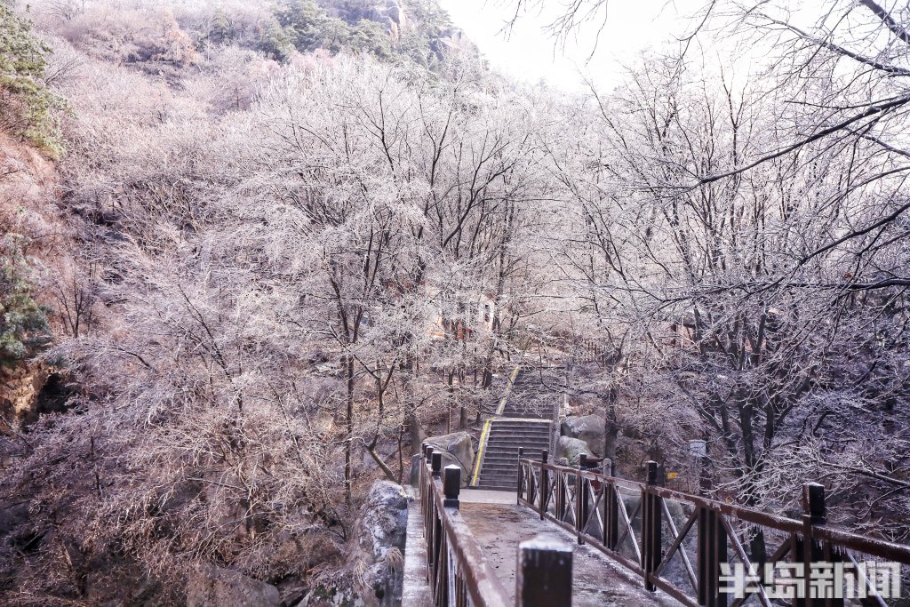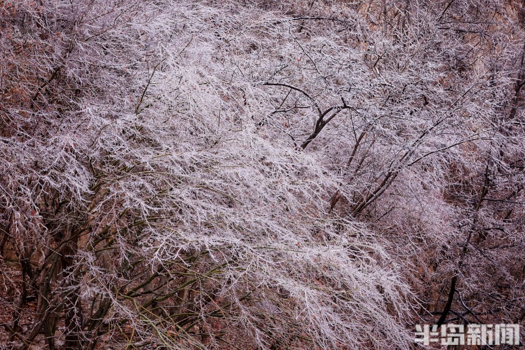 半岛全媒体记者 吴璟 12月12日,朝阳初升,青岛崂山景区在清晨微光的照射下四处泛起晶莹的色彩,如梦亦幻。连续降温降雨中,北九水、巨峰景区接连出现雨凇雾凇景观,晶莹剔透的冰包裹着树枝和尚未掉落的叶子,带来青岛难得的冬日胜景,将崂山装扮得宛若仙境。