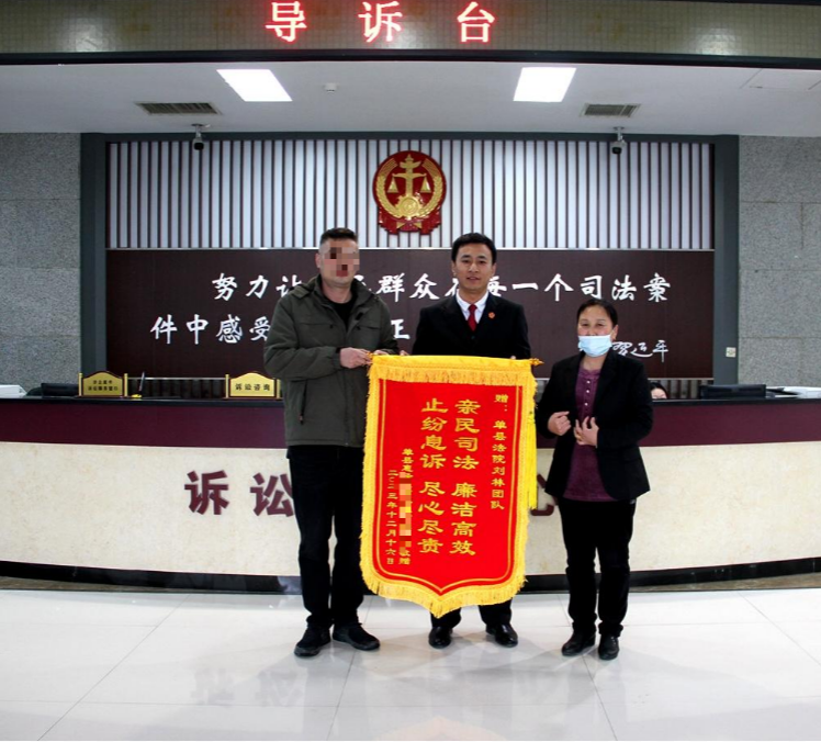 近日,某公司业务经理李某向菏泽单县人民法院刘林速裁团队送上一面锦旗, “亲民司法、廉洁高效、止纷息诉、尽心尽责”十六个大字格外醒目。