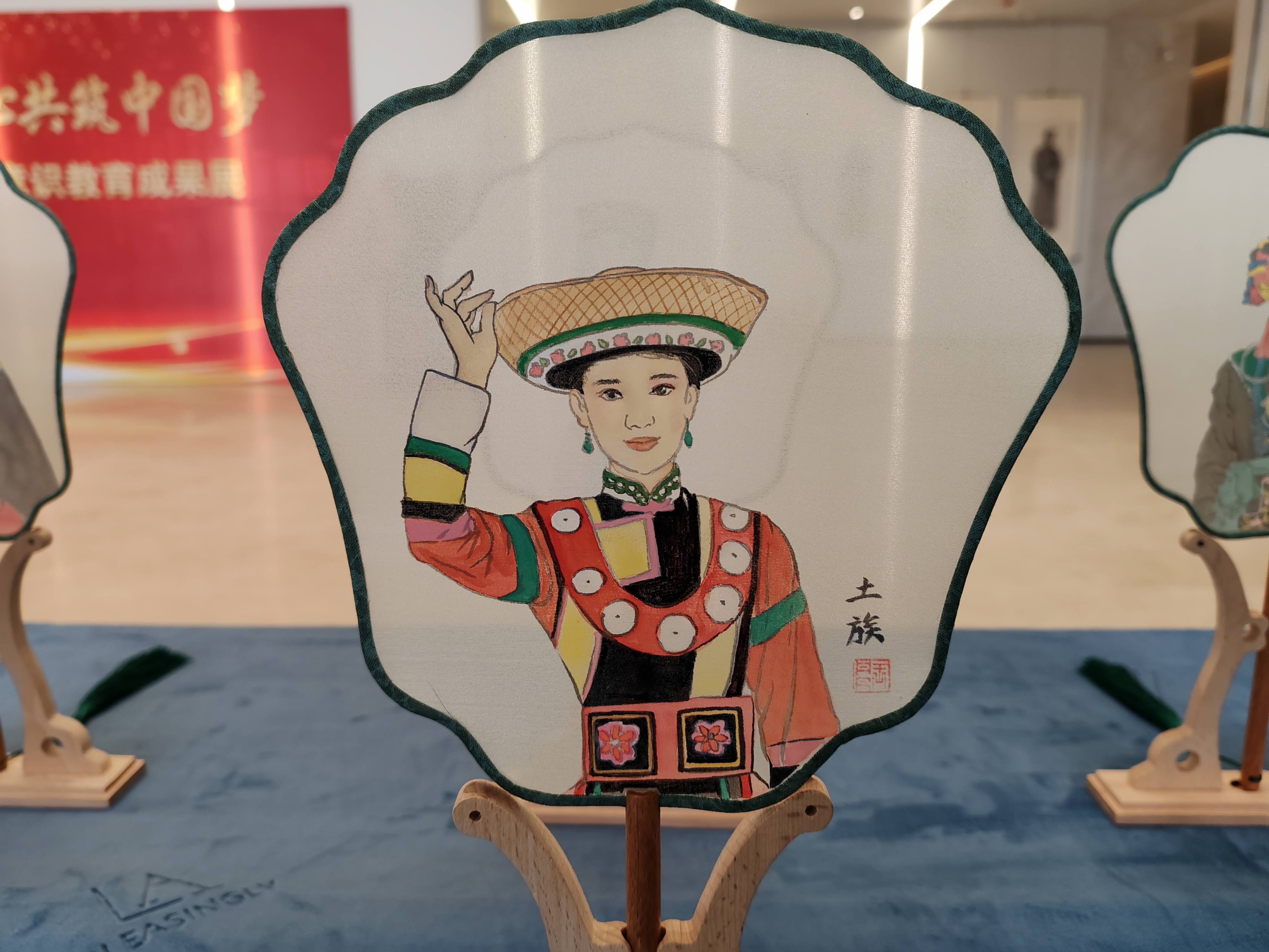 据介绍,本次成果展是学校首次全面系统展示学校铸牢中华民族共同体意识教育成就。此次展览以“铸牢中华民族共同体意识教育”为主题,分设课程资源、学生大赛成果、团扇创作、剪纸社团、书画卷轴作品等单元,300余件展品琳琅满目。