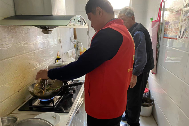 活动中,志愿者们带去新鲜水果和蔬菜、鱼、肉等食材上门到辖区60岁以上孤寡老人、残障老人、空巢老人和家庭困难等老人家中下厨做饭,洗菜、切菜、炒菜,厨房里忙得热火朝天,不一会儿,特别适合老年人牙口与脾胃的爱心 " 盛宴 " 上桌了。志愿者和老人们围坐在桌子上,有说有笑,场面十分温馨,老人们吃着可口的饭菜,脸上洋溢着幸福的笑容。此外,志愿者们还帮助老人打扫卫生,陪他们唠家常,了解他们的生活需求,帮助解决生活中遇到的实际困难。