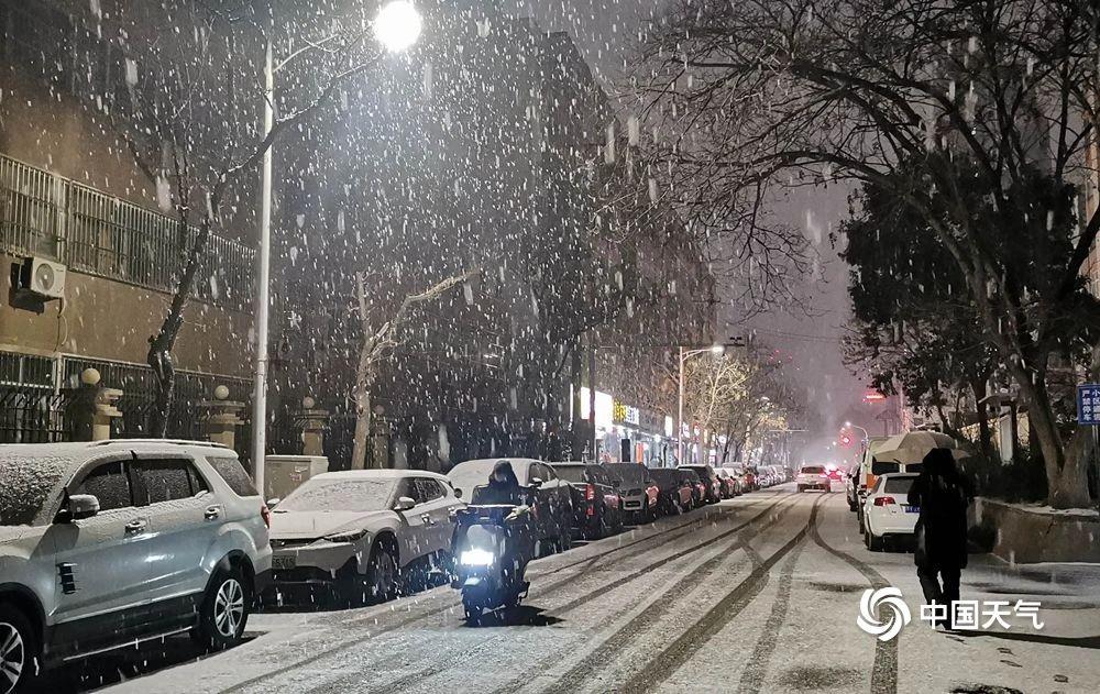 △河南郑州出现大到暴雪。